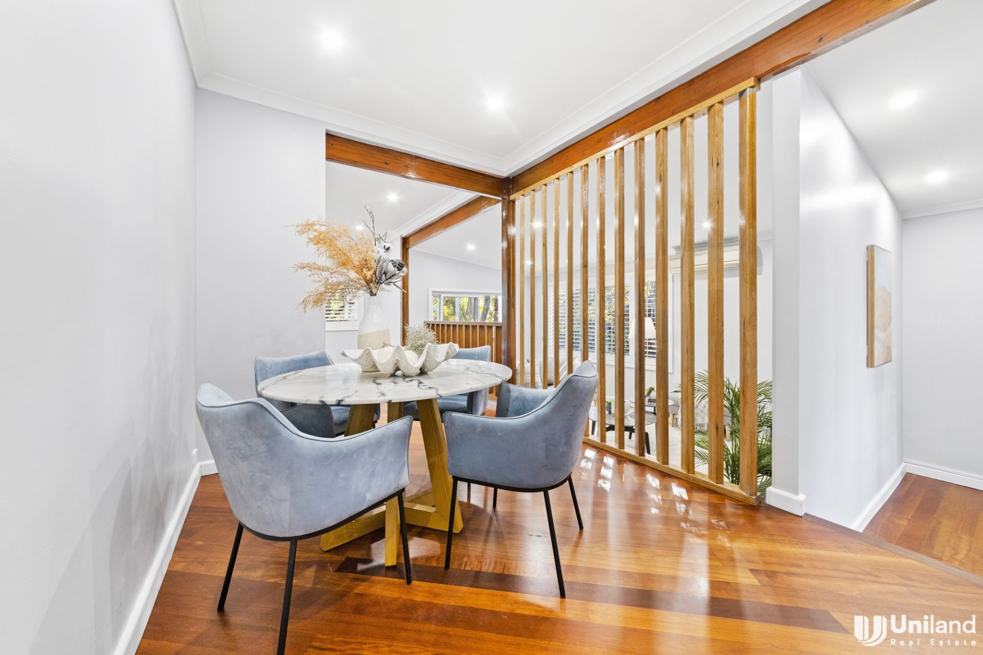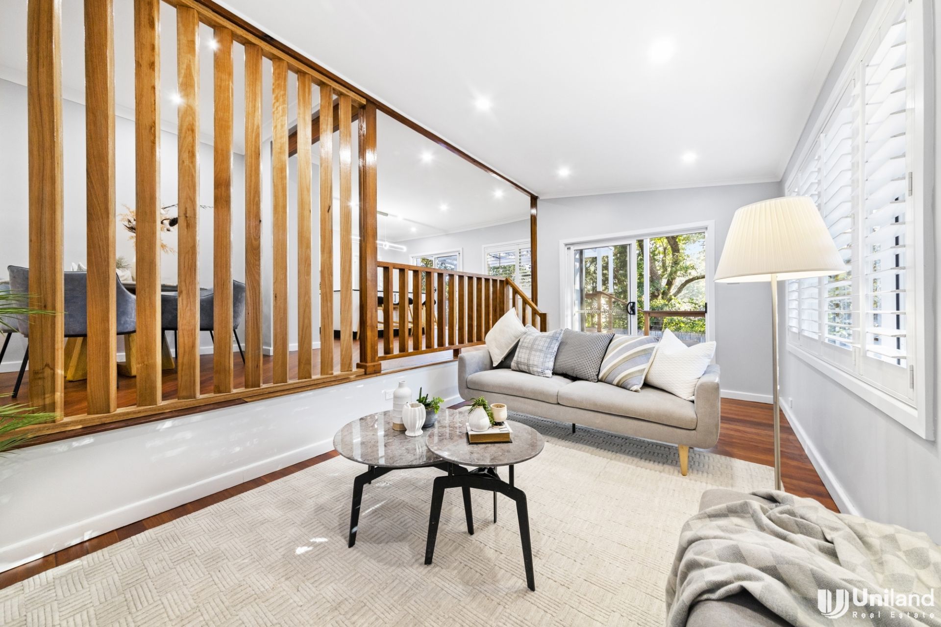 - Stunning polished floors, plantation shutters and French doors