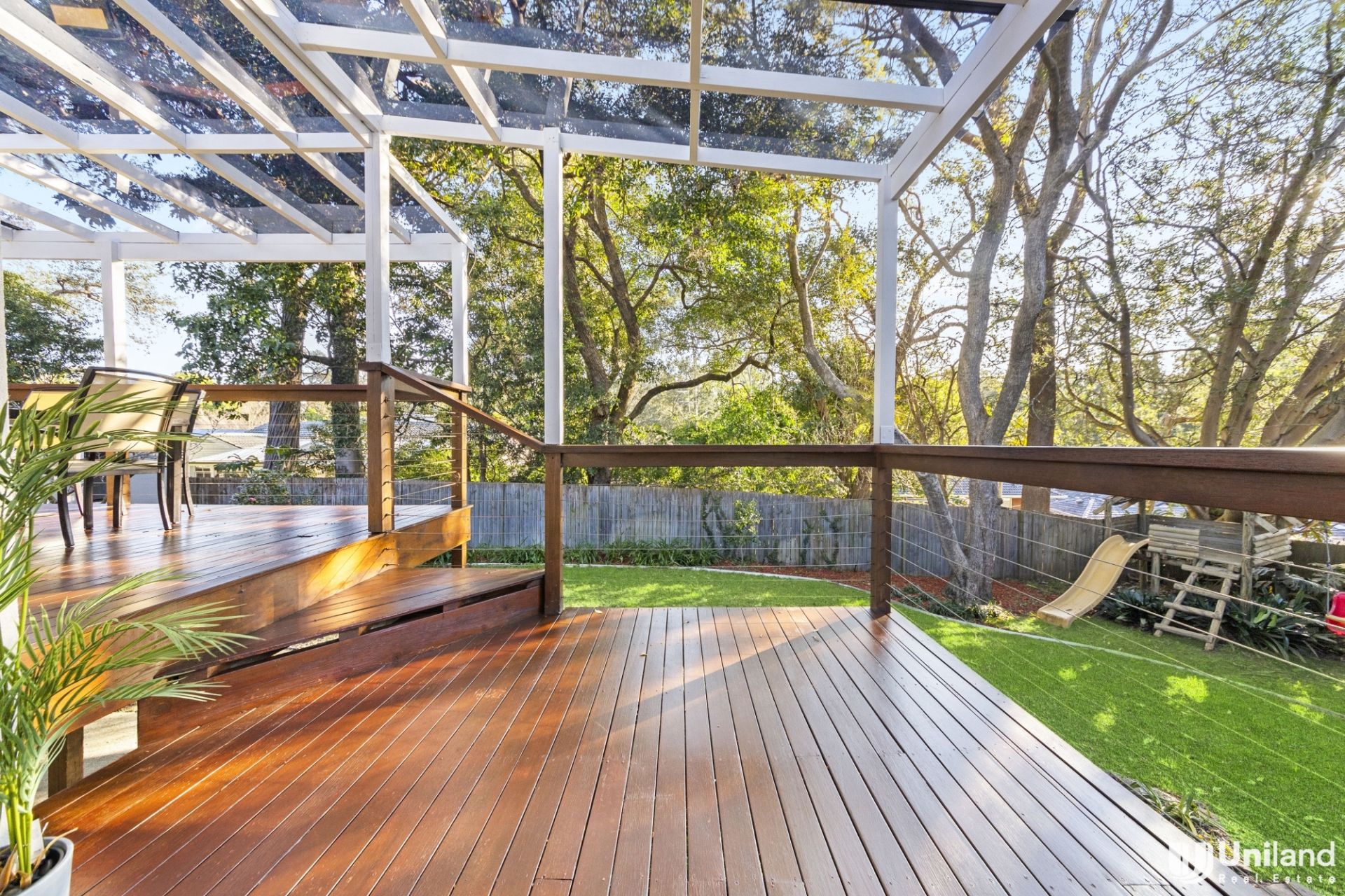 - Spacious entertaining deck perfect for al fresco dining, equipped with a gas outlet for BBQ