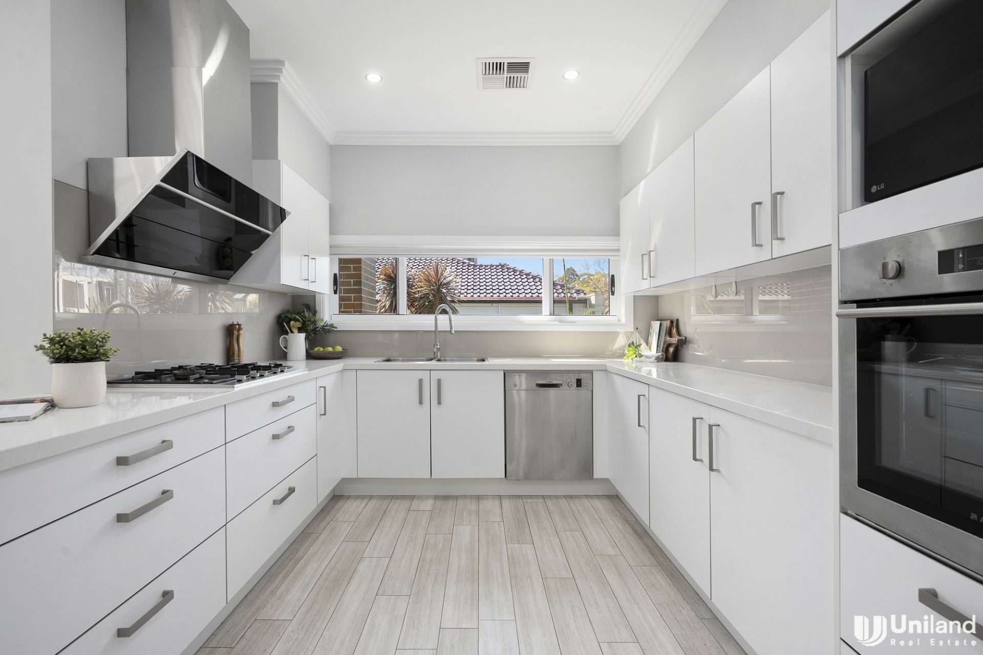 -Gourmet gas kitchen with 40mm stone benchtops, quality appliances, and plenty of storage.