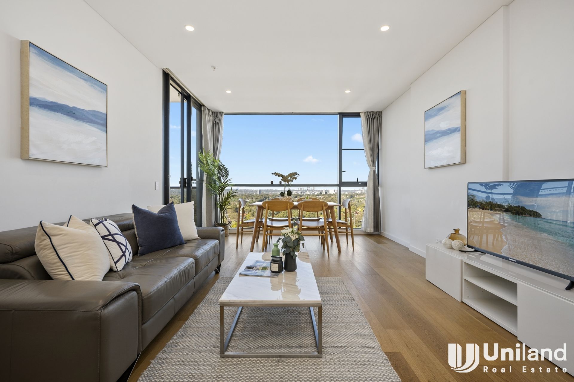 - Open-plan living/dining with uninterrupted panoramic views via floor-to-ceiling windows. Covered balcony in North-East aspect