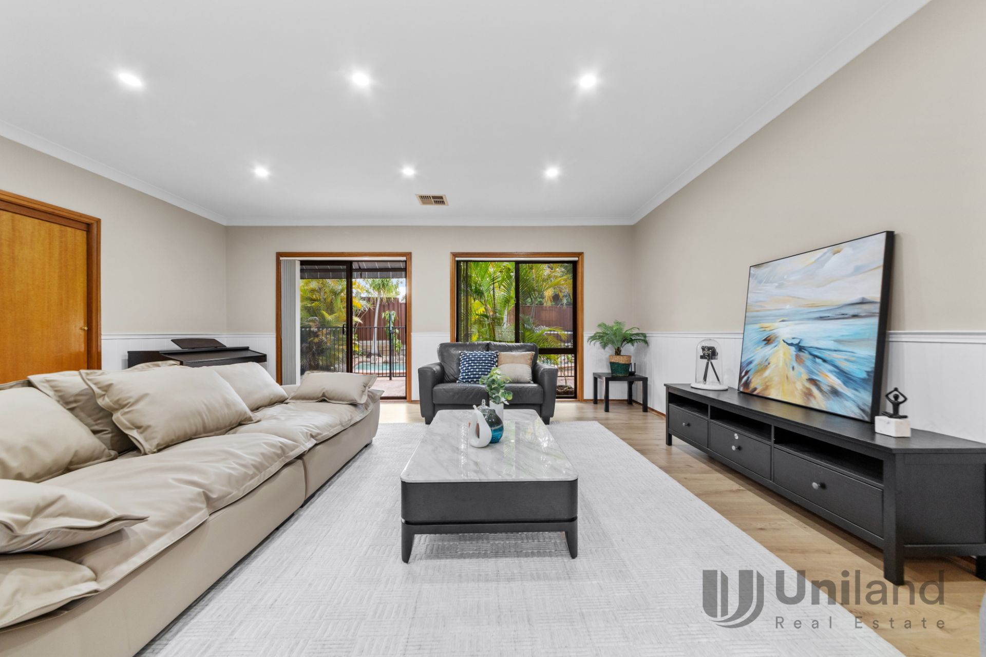Welcome to a serene family sanctuary nestled within the highly sought-after, whisper-quiet cul-de-sac of Crestwood Estate. Set on a generous 827.90sqm parcel, this immaculately presented home offers exceptional space, flexibility, and lifestyle comfort. Boasting multiple living areas, a renovated bathroom, chic modern interiors, and superb outdoor entertaining complete with a pool, it provides an ideal retreat for growing families