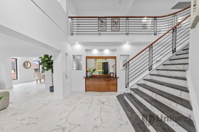 Privately positioned away from the world, this palatial executive residence is built to impress. Grandly welcomed by an impressive entry hall, a sky-high void and statement staircase immediately set a distinguished tone. Sprawling formal living and entertaining areas connect a gourmet gas kitchen to family living, while stunning views reaching Parramatta and the green spaces of Bella Vista Farm are filtered throughout the home.