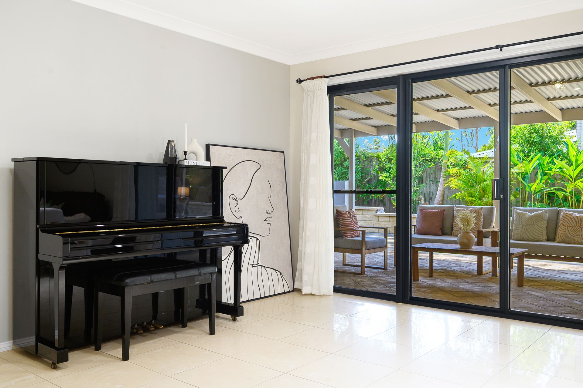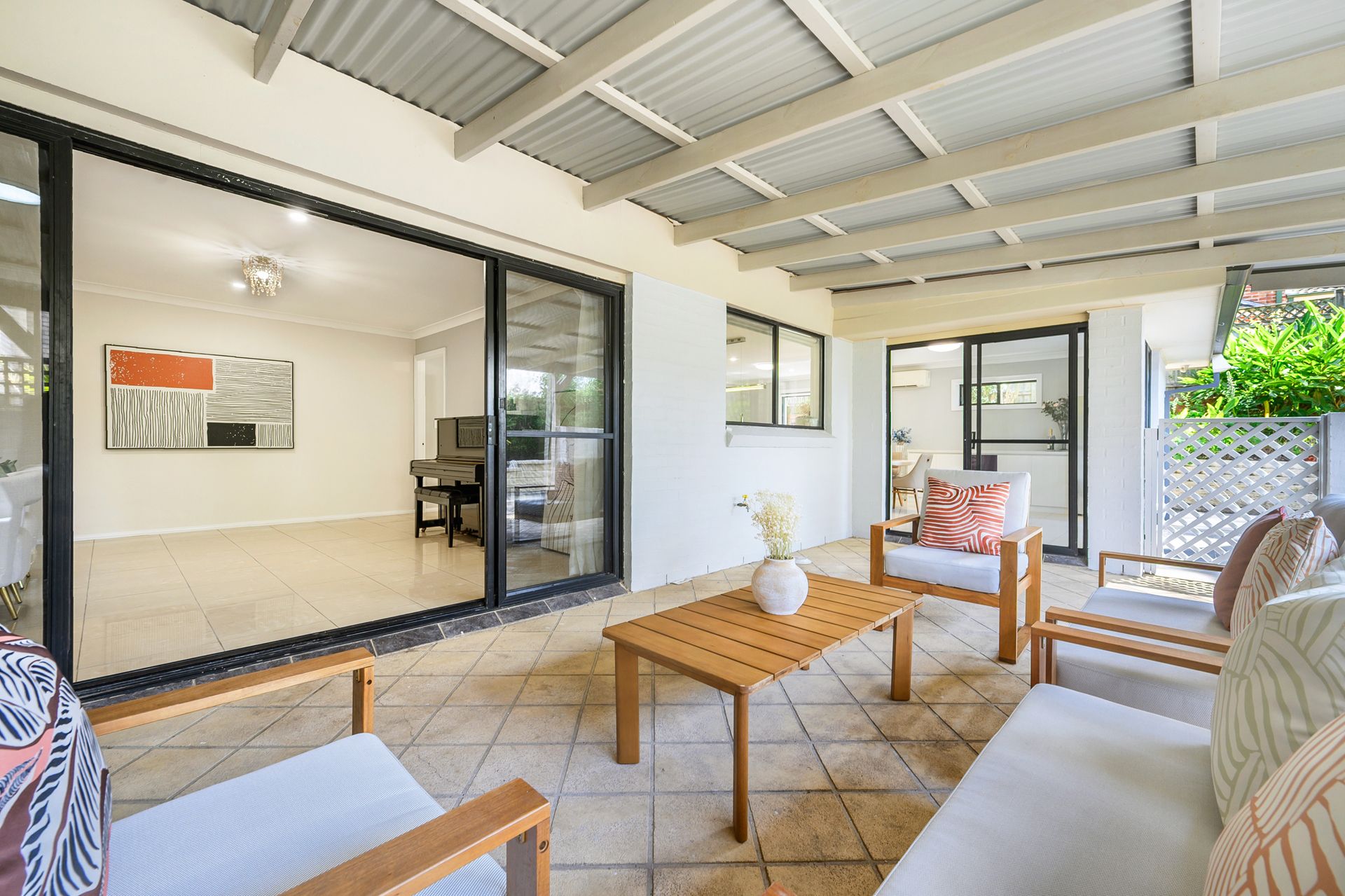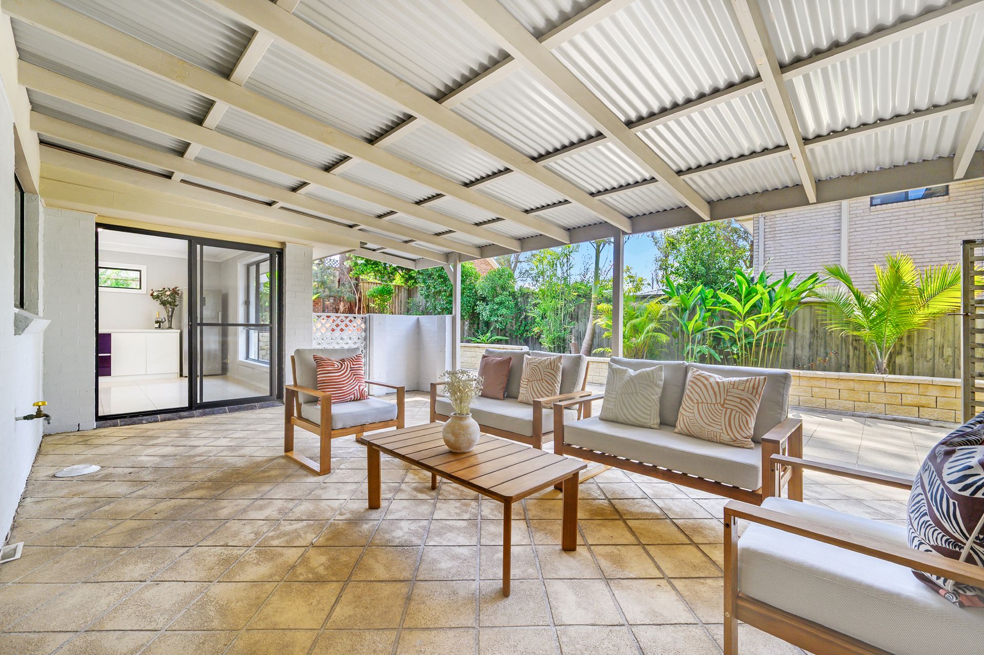 -Covered Alfresco area is complete with a raised siting -area and tiles walkway to the backyard and built in planter boxes