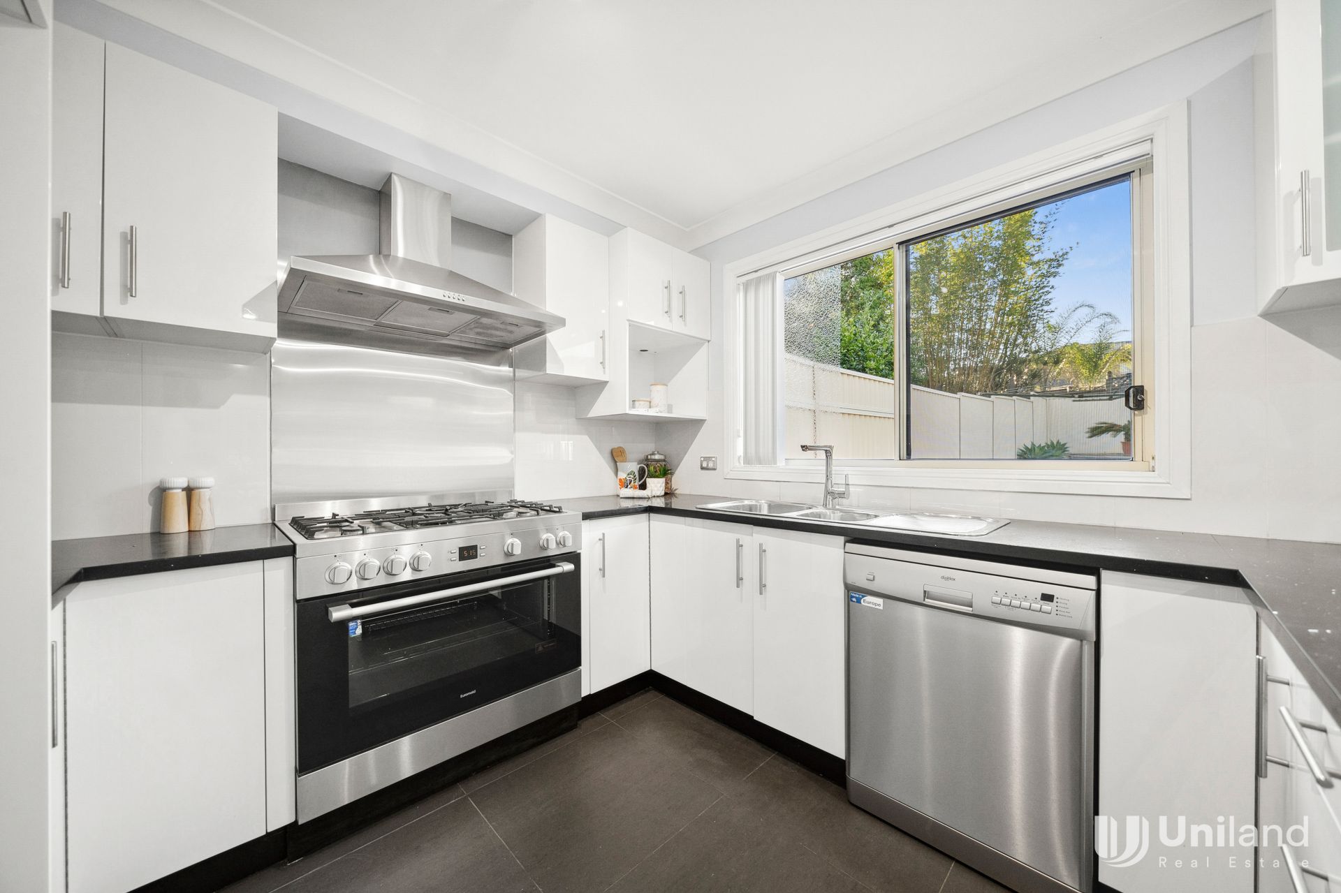 -Gourmet gas kitchen with stone benchtop and quality appliances