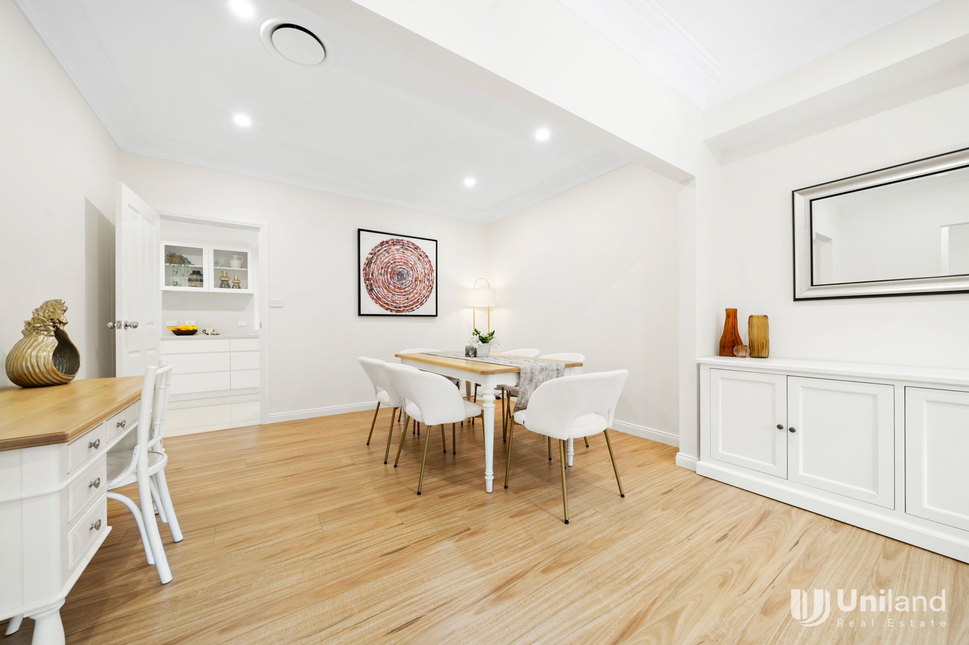 - Vast open plan living and dining rooms with high ceilings