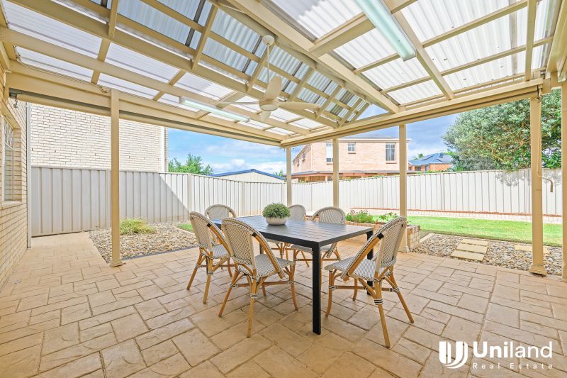 Step outside to the covered alfresco area, the perfect setting for weekend barbecues or relaxing evenings with family and friends. The spacious backyard lawn is a dream for families, providing a safe and open area for children and furry friends to run around freely. Whether you're hosting outdoor gatherings or simply enjoying the fresh air, this backyard offers a private oasis for everyone to enjoy.