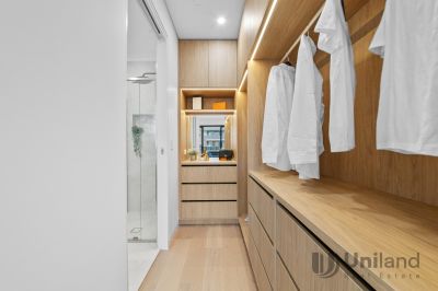 - Impeccably appointed, fully tiled bathrooms with floating vanities, smart mirrors, rain showers, concealed cistern toilets