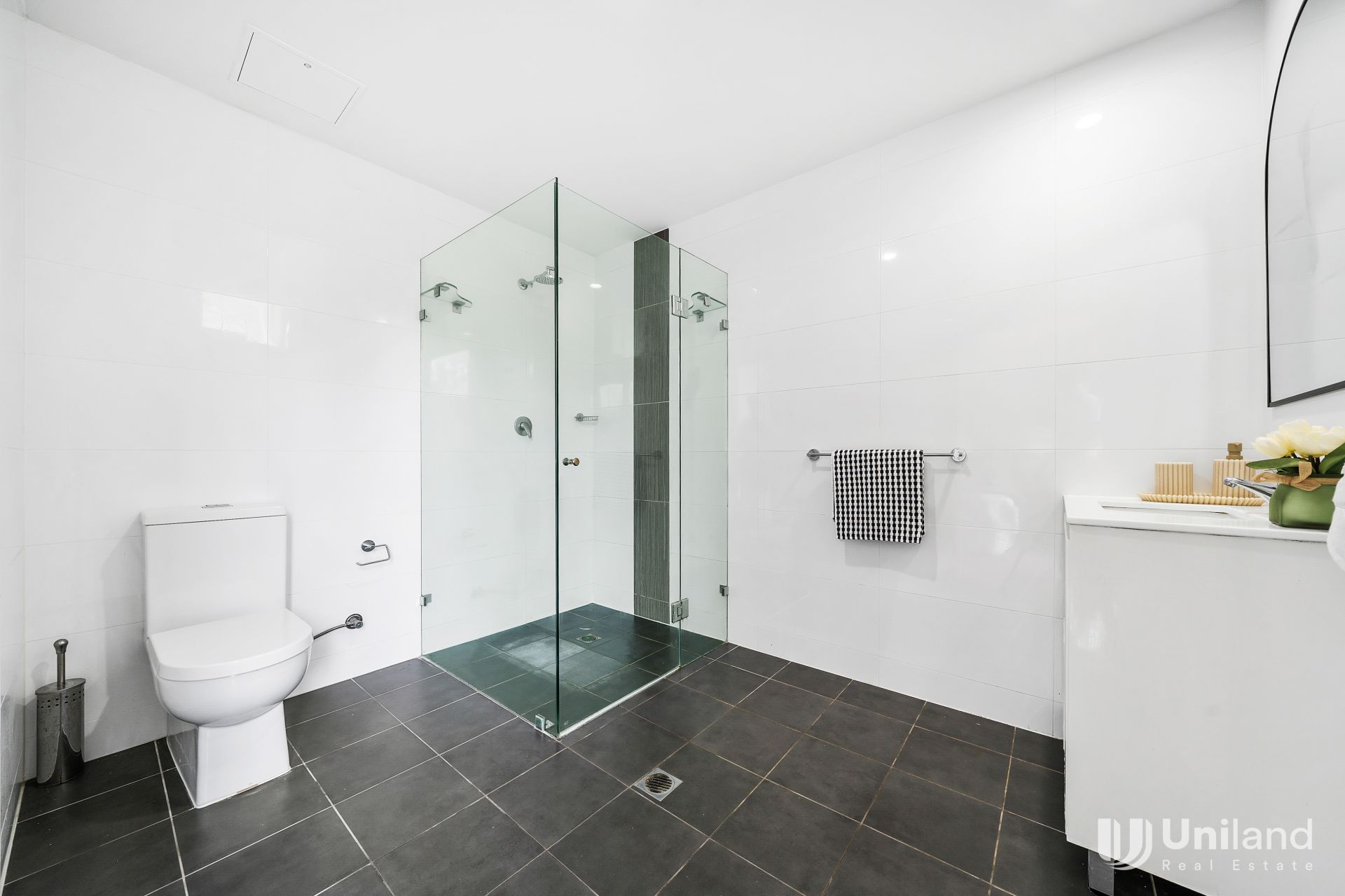 - Modern bathroom with shower