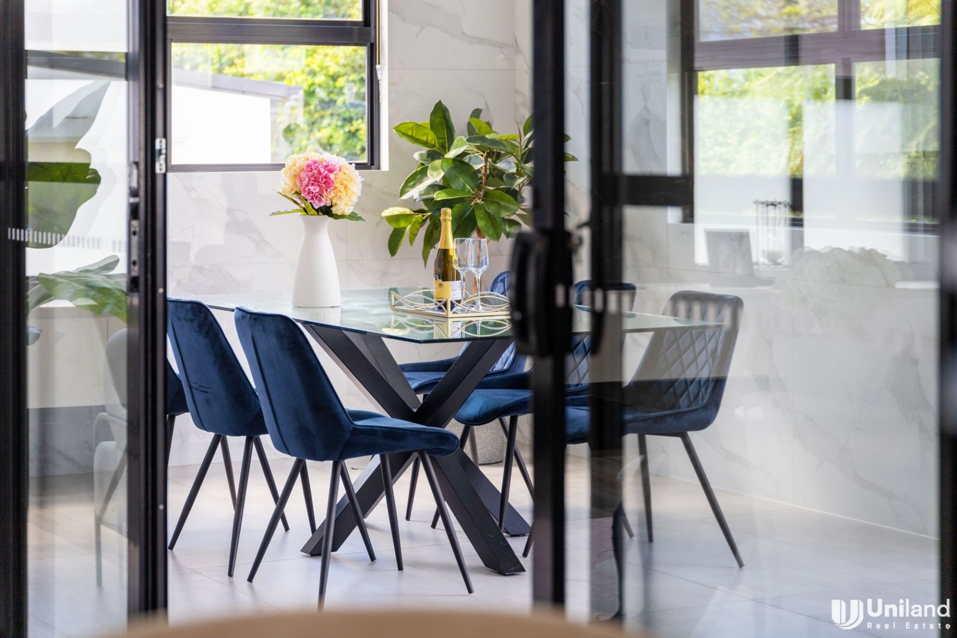 Displaying an elite level of opulence, this stunning freestanding home instantly captivates with unmistakable contemporary appeal. Framed by a wide, gated frontage and serene koi pond, secure keyless entry welcomes polished finishes wrapped beneath modern, coffered ceilings accented by designer lighting.