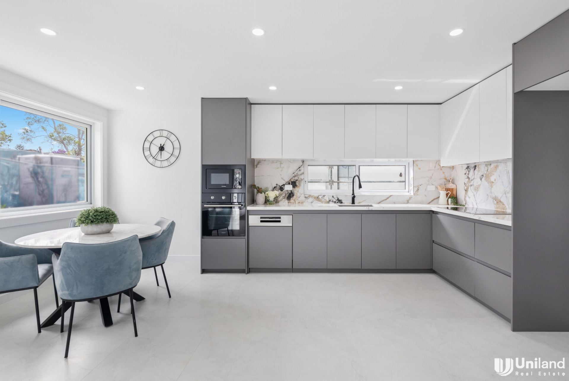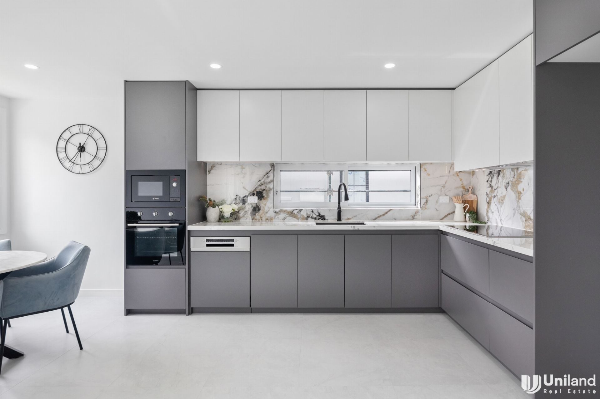 - Contemporary kitchen with high quality Bosch appliances and stone benchtops