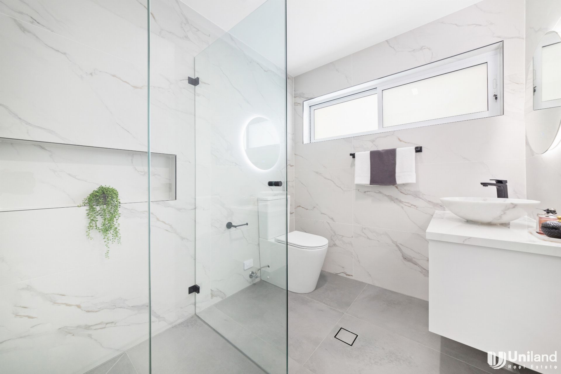 - Two modern bathrooms with floor to ceiling tiles