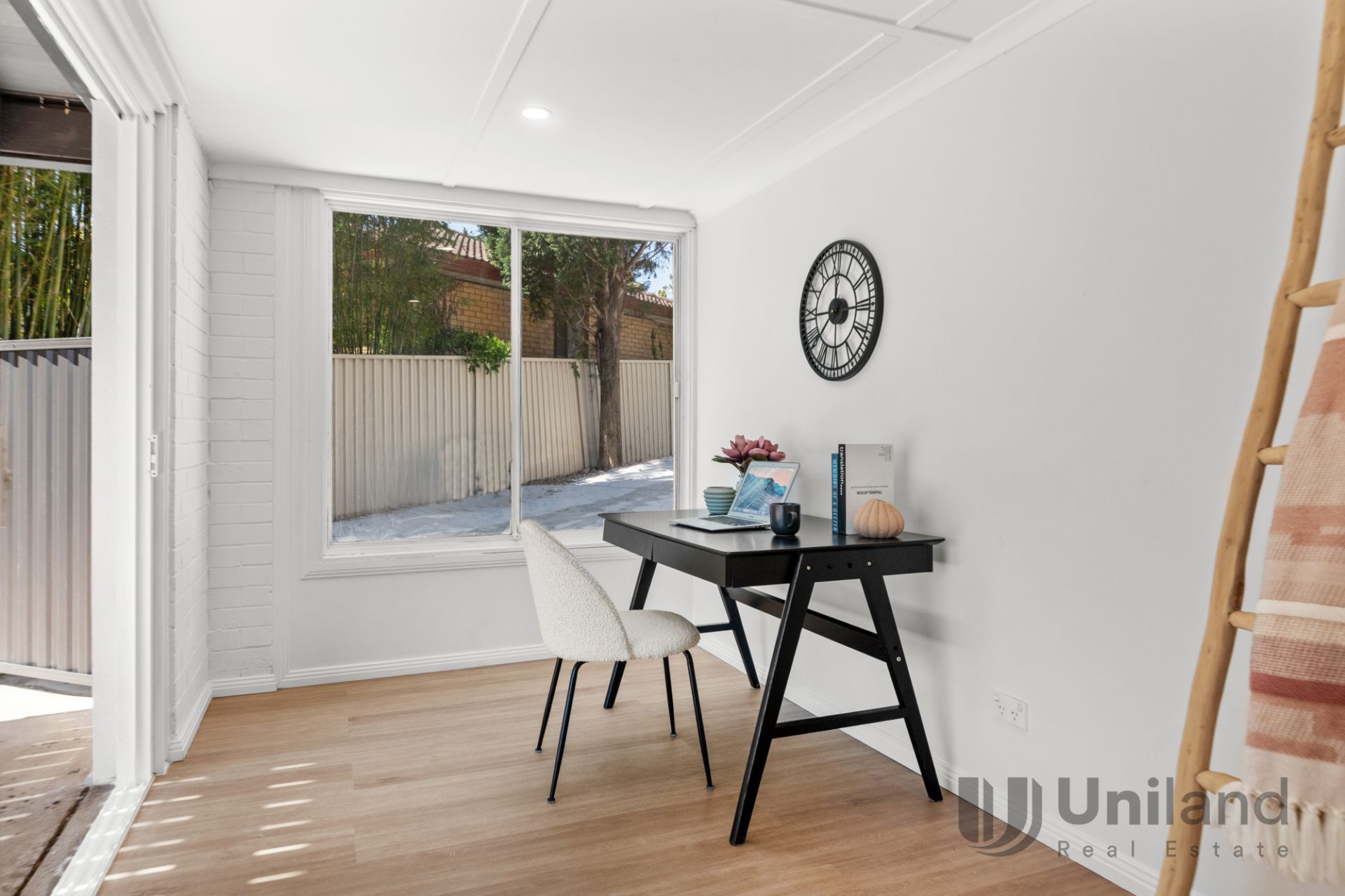 • Dedicated study positioned behind closed doors, modern laundry with direct outdoor access, stylish powder room
