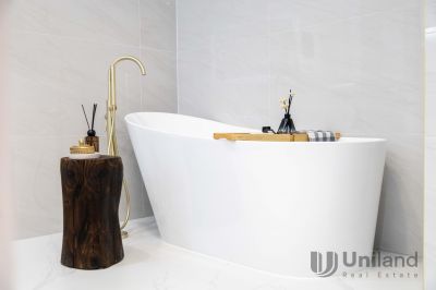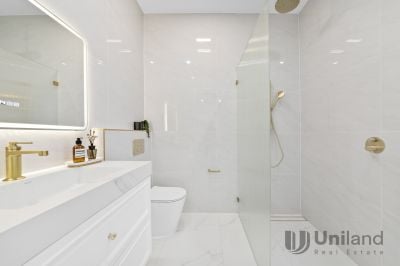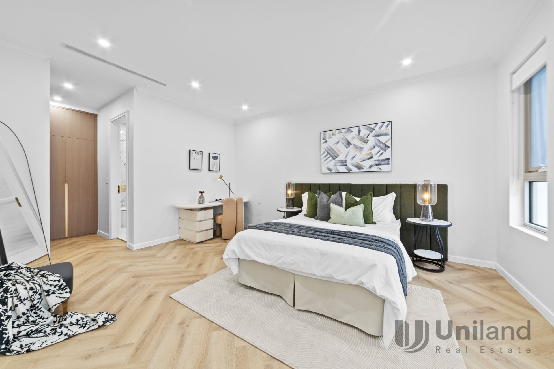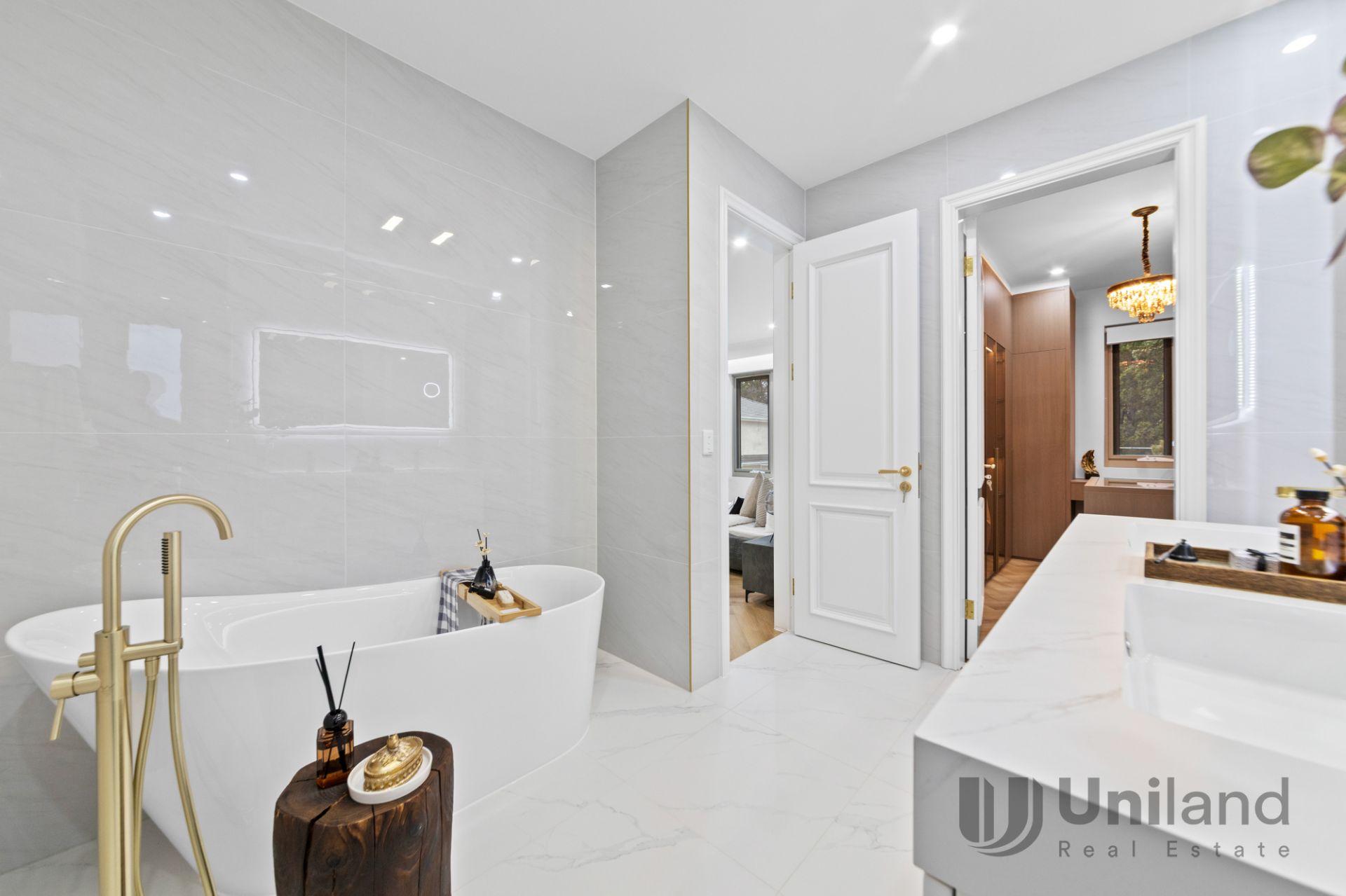 • Palatial primary features a walk-in wardrobe with a centre display buffet and make-up station, spa-like ensuite with a soaking freestanding bathtub, hidden shower, hidden toilet, double vanity, LED mirror