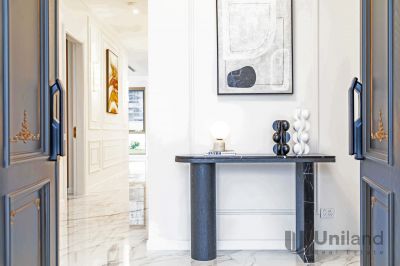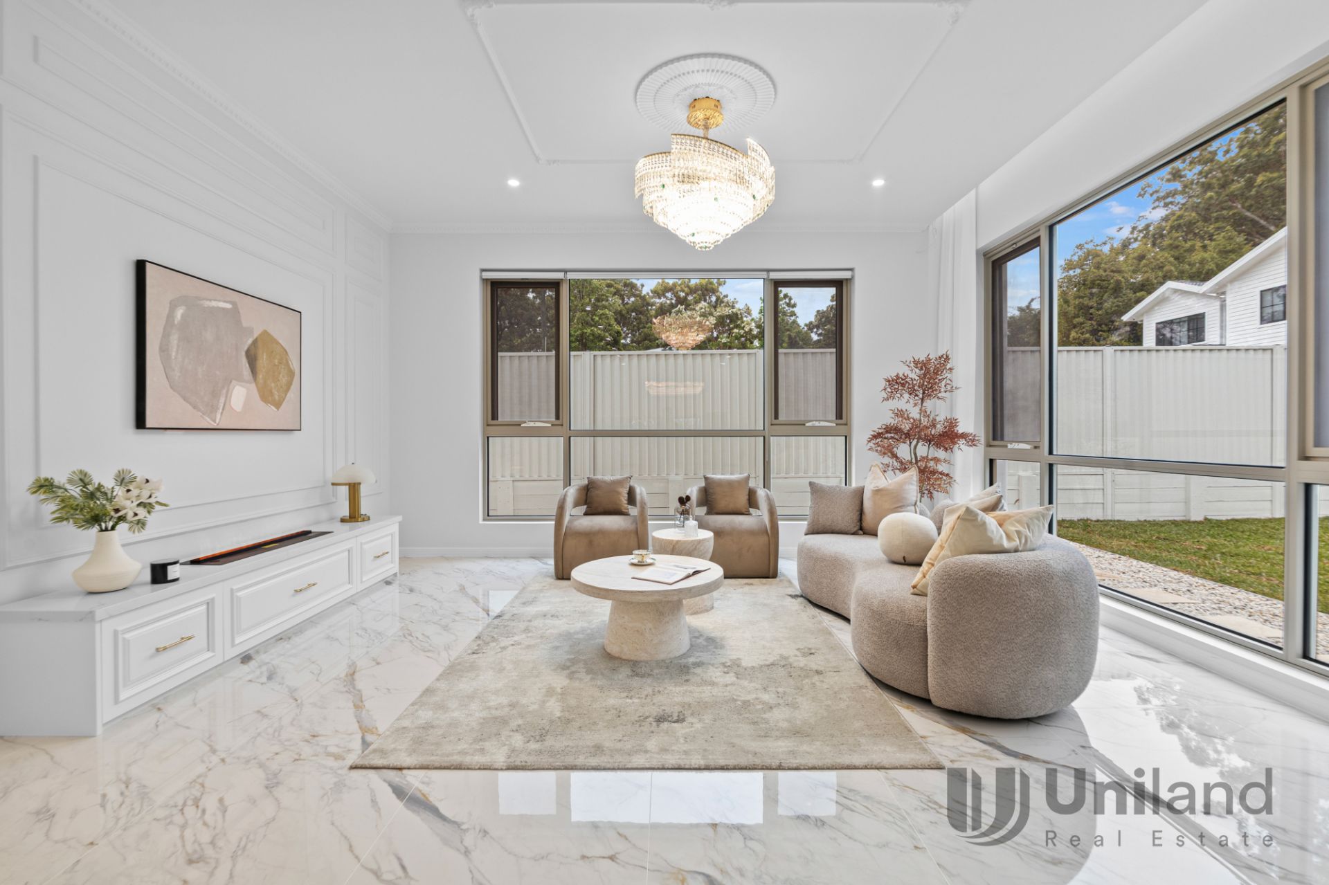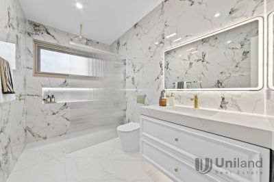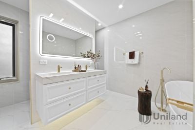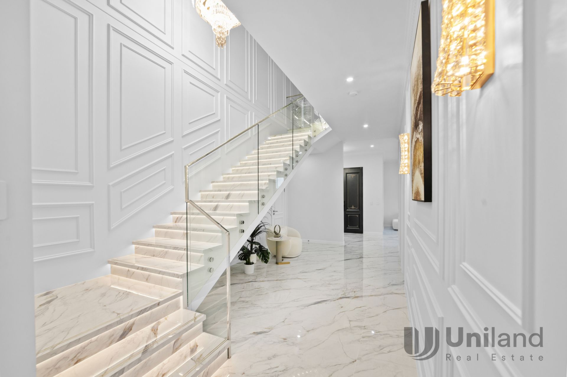 Designed with an unwavering commitment to luxury, this brand-new European-inspired French Provincial home is matched by a lifestyle of modern grandeur. Constructed with the enduring quality of double brick and concrete foundations to each floor, palatial proportions are highlighted by marble inspired finishes accented with gold and chandeliers reminiscent of European ballrooms.