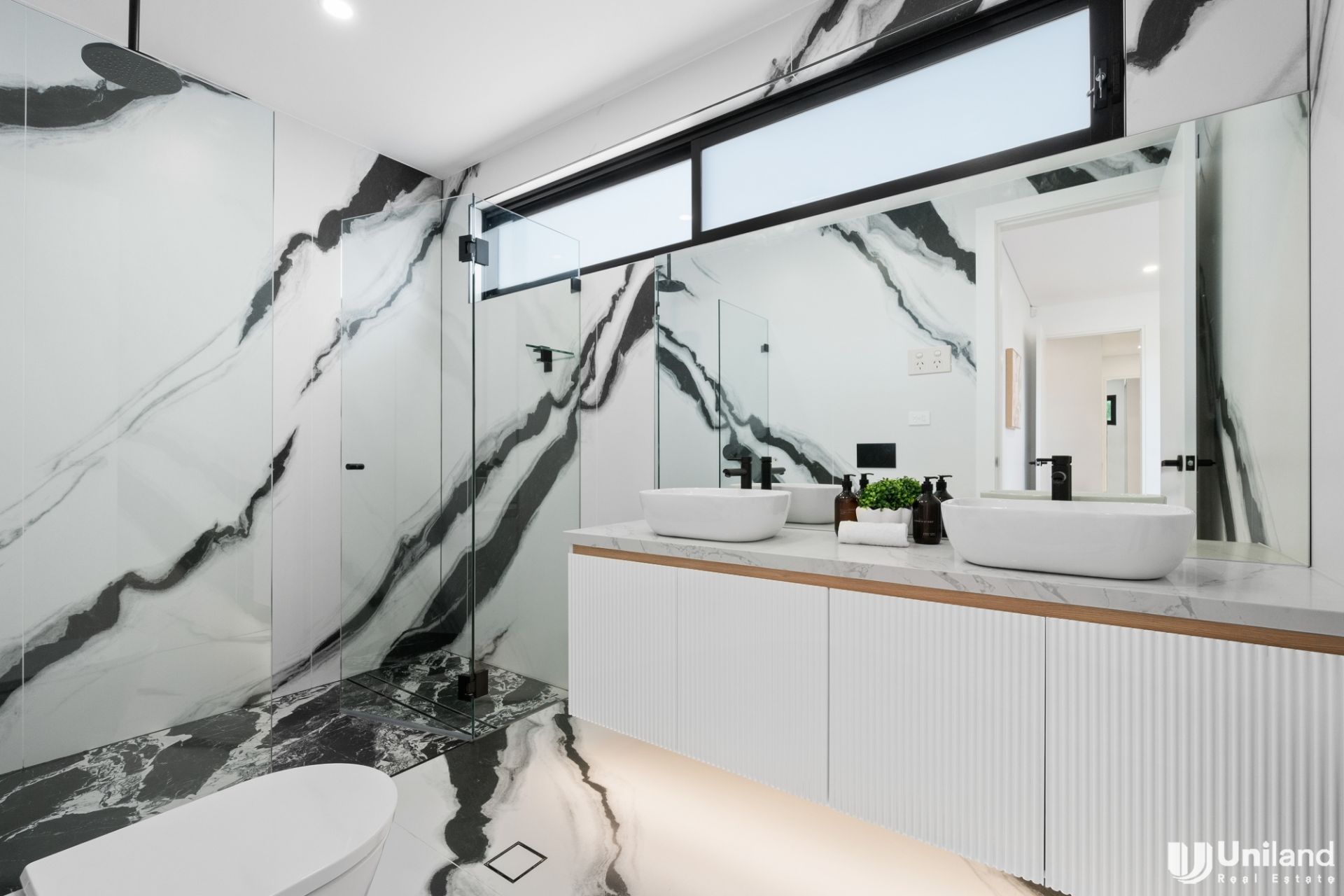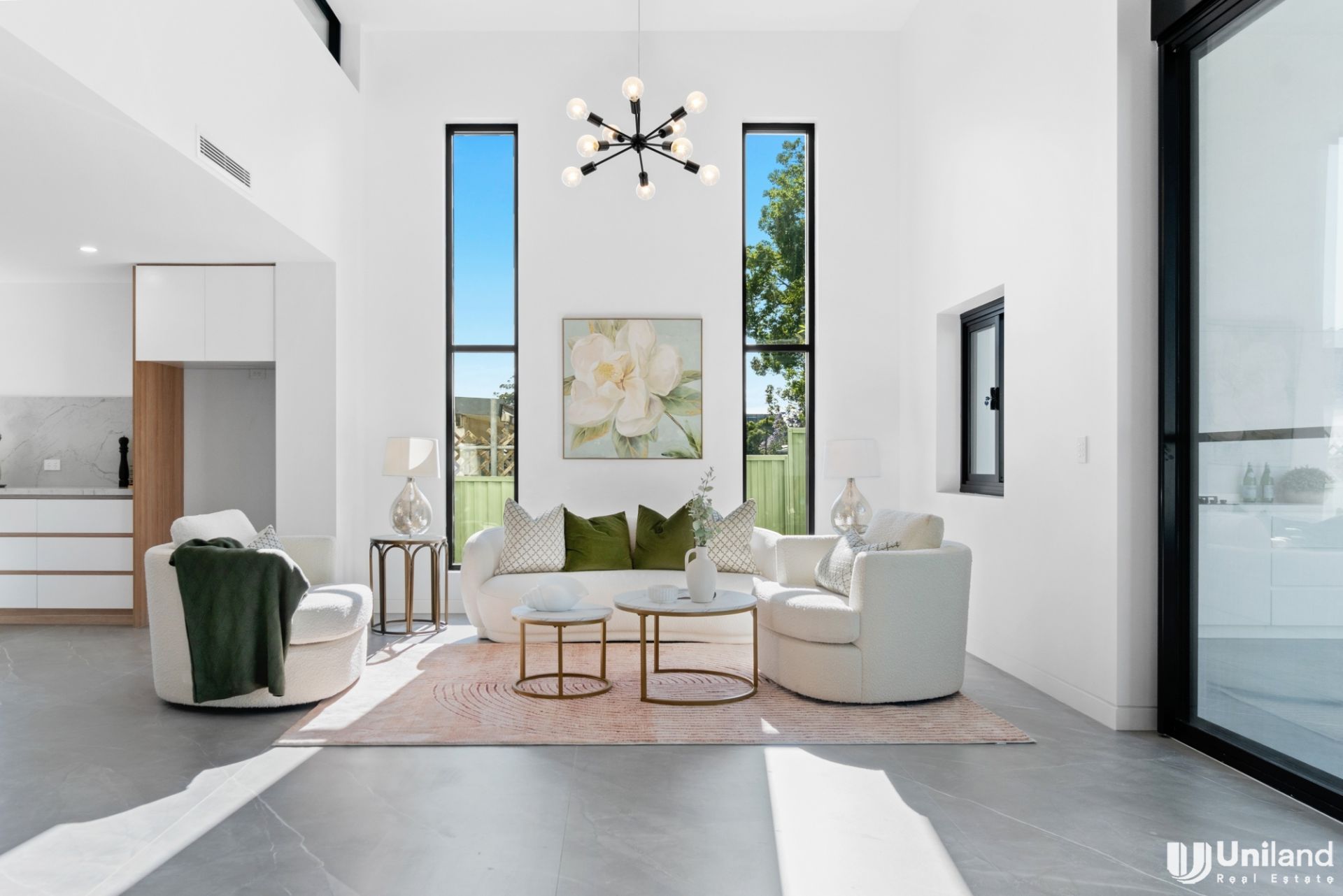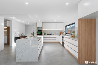 Striking a bold statement in design, this brand-new, tri-level, high-specification home presents stylish family proportions in a peaceful location, within walking distance of Carlingford Court shopping centre, expanses of parkland and public transport.