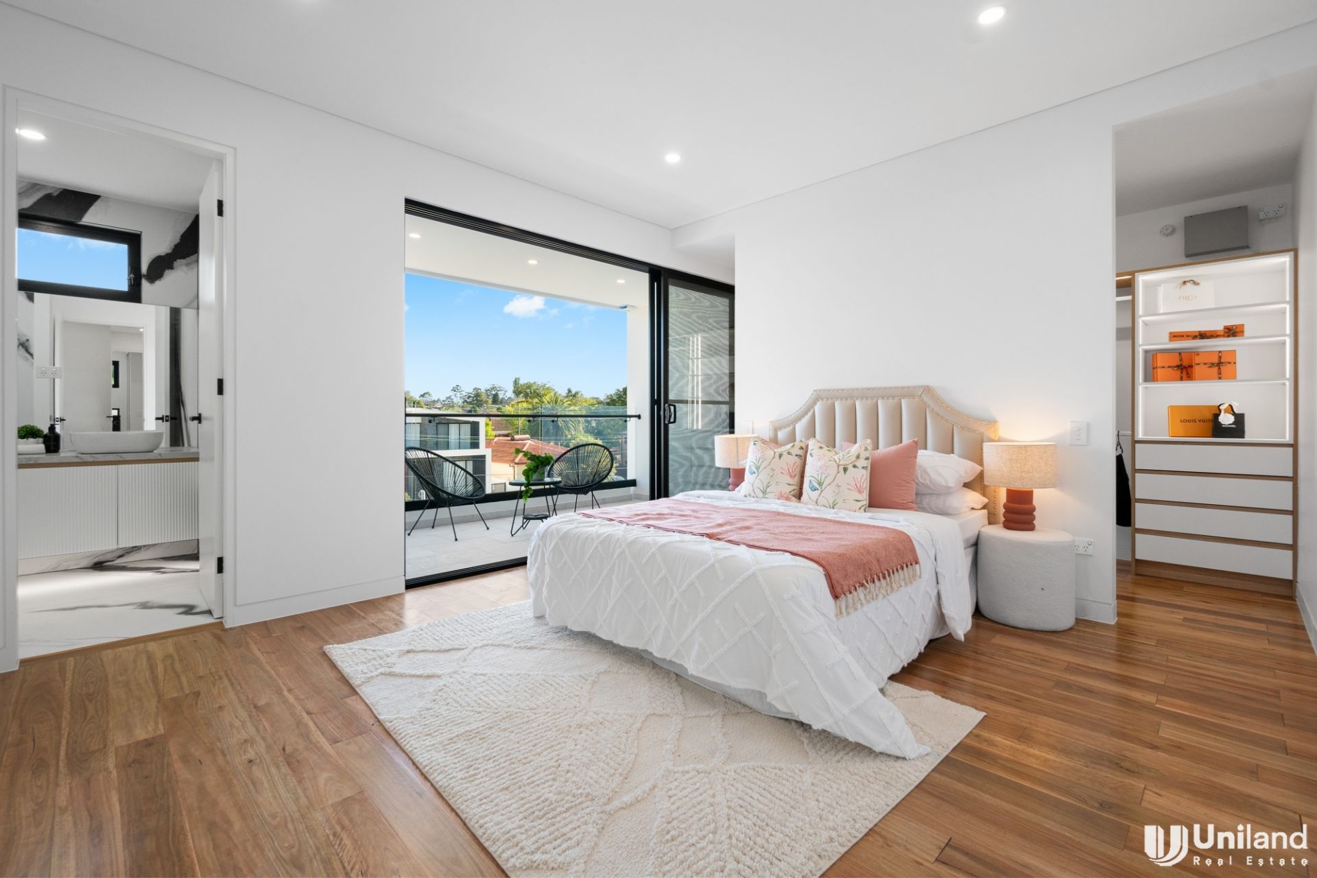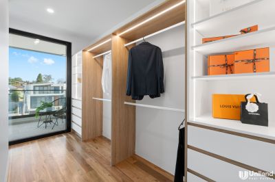 - Primary bedroom with elegant walk-through wardrobe, ensuite with double vanity and full-span sliders connecting to a balcony