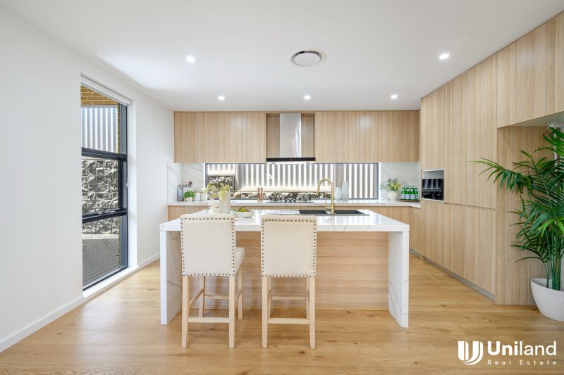 An open plan layout from the kitchen, dining and living rooms flow to the covered al-fresco entertaining area for weekend BBQ and relaxing outdoors. With a secure level low maintenance backyard providing a great space for small children and furry friends to play safely. Abundant light filled rooms, stylish entrance foyer, feature timber staircase, easy care flooring and glass balustrading provide a luxury feel of comfort and space.