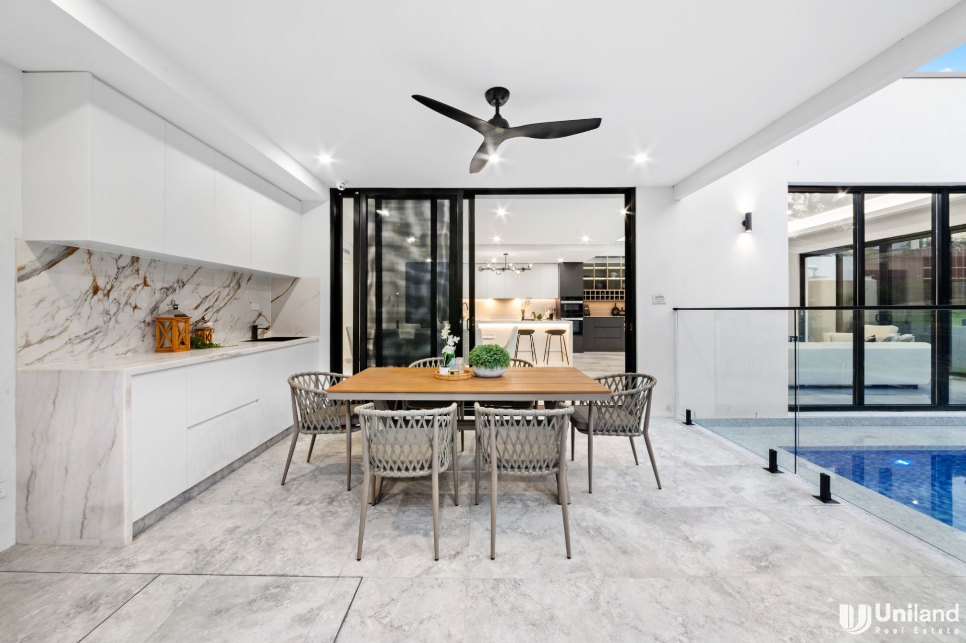 - Spacious open-plan living and dining area overlooking the resort-style sparkling saltwater pool, creating a seamless indoor-outdoor flow perfect for relaxation and entertaining
