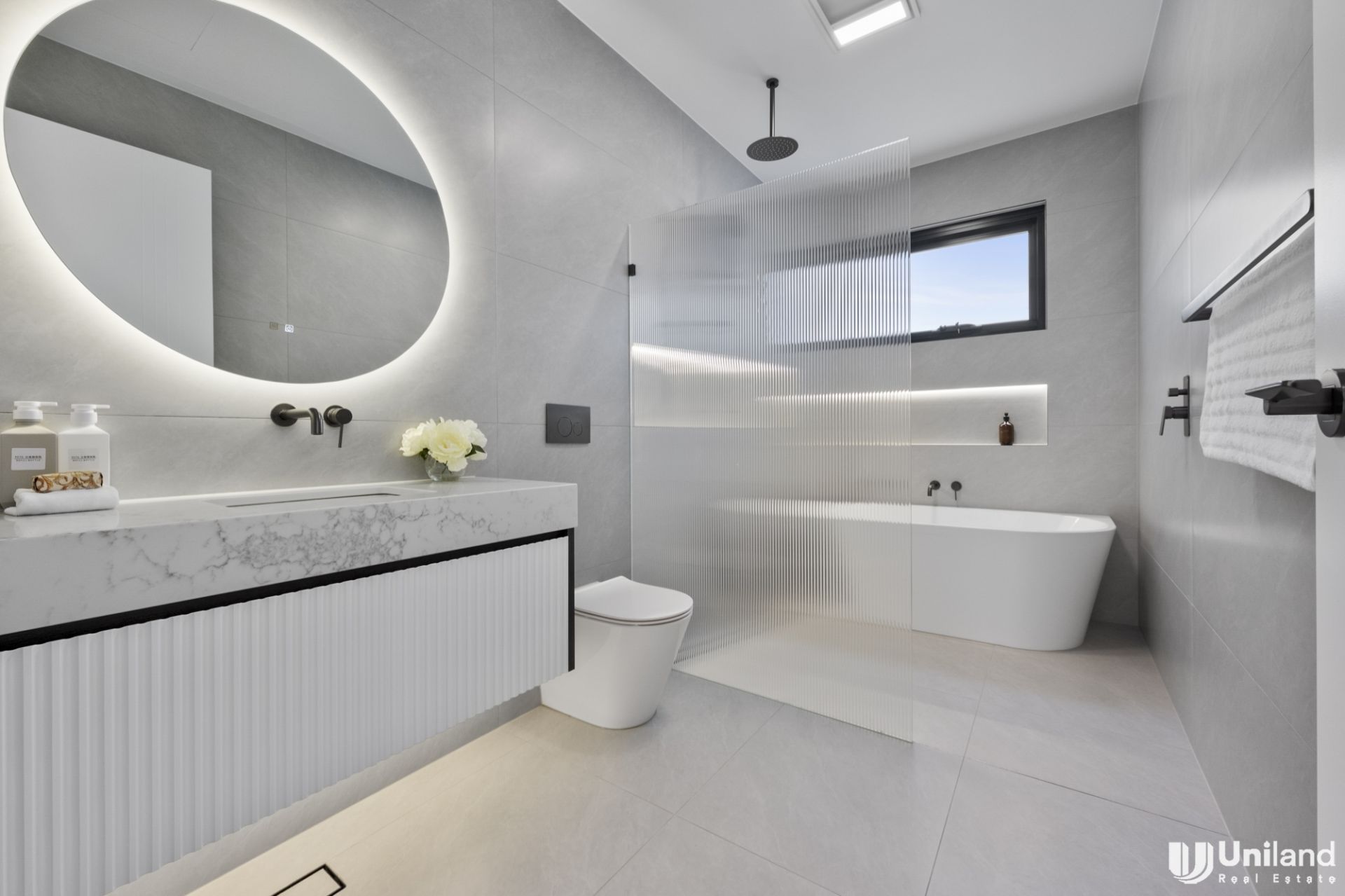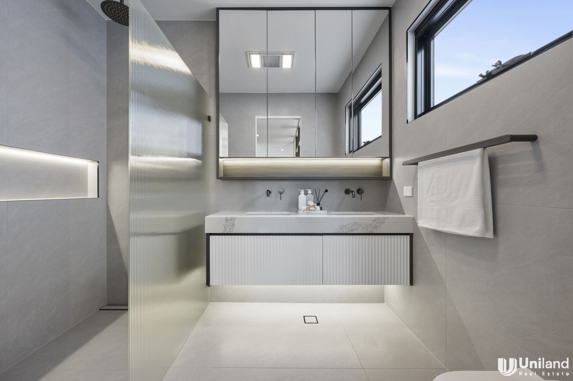 With a private contemporary facade and seamless interiors this recently completed residence has all the hallmarks of quality architectural design with a double brick and concrete slab construction.