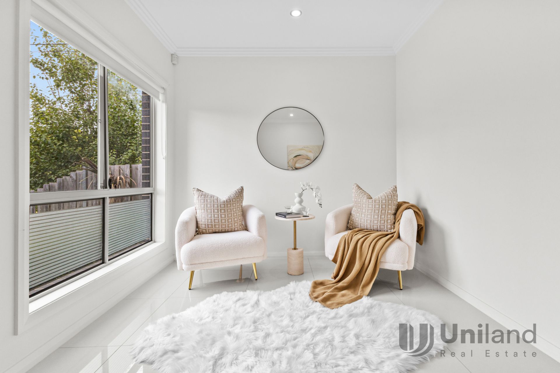 Anchored by a contemporary kitchen, showcasing stone surface and an island offering casual seating, the ground floor boasts the inclusion of a versatile retreat or study upon entry. With a commitment to an effortless layout, bathrooms on each floor are enhanced by a principal suite complete with an ensuite and walk-through robe. With every need met, from ducted air