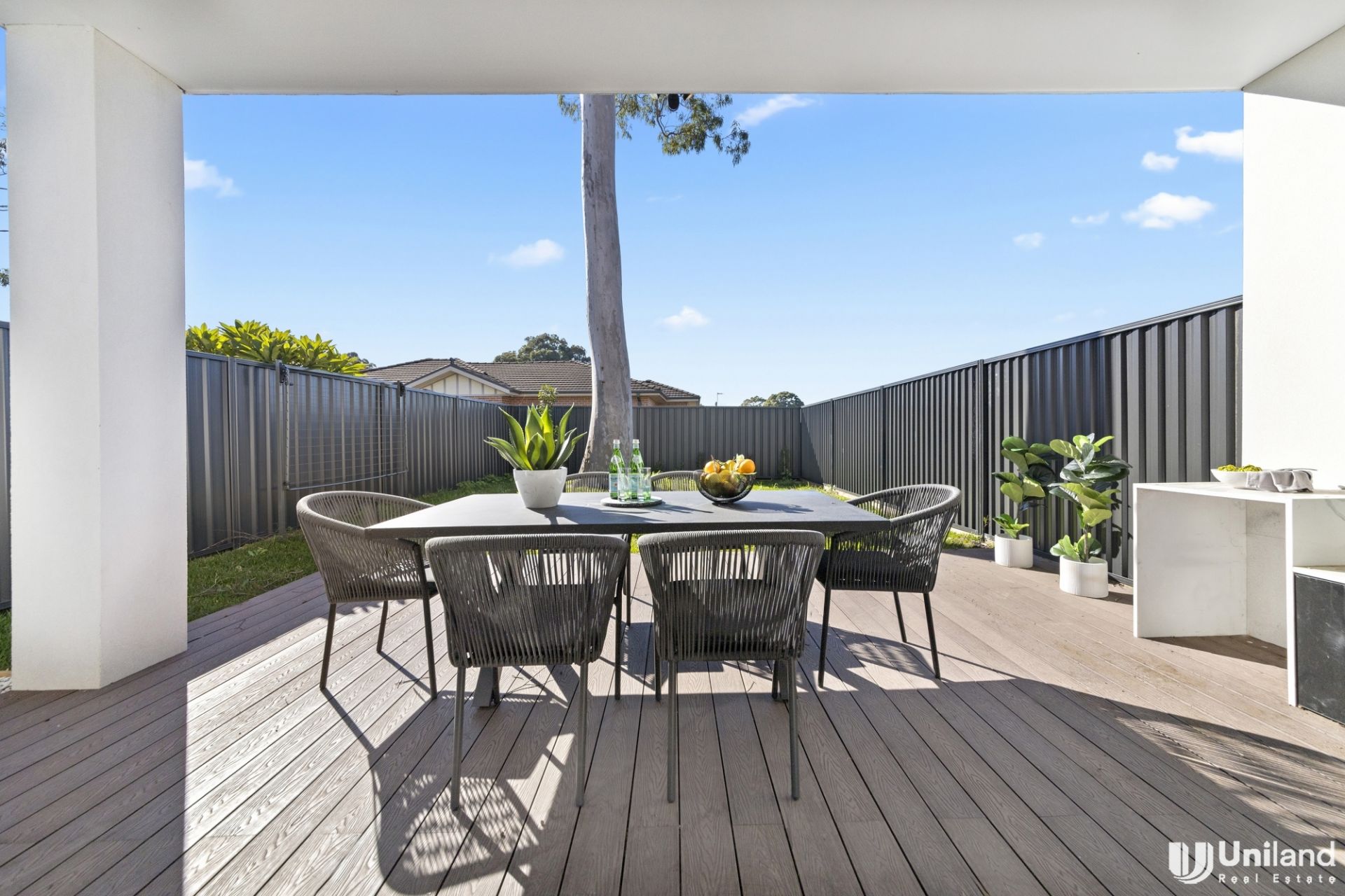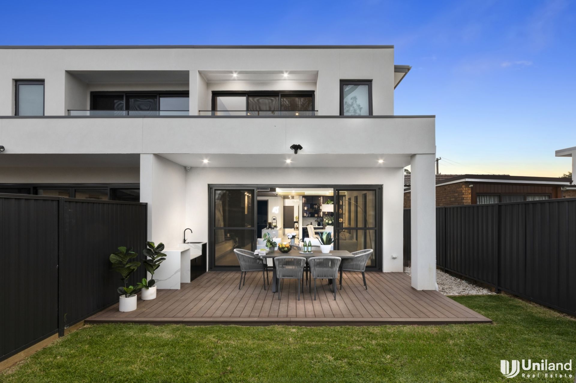 * Large outdoor entertaining with covered dining and bbq zone overlooking the secure level rear garden perfect for furry friends and small children