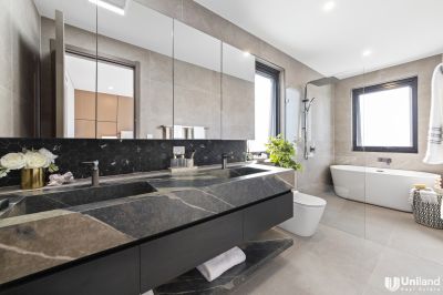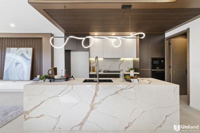 * The stylish kitchen enjoys stone benchtops including to the impressive long waterfall island bench. It also features high-end appliances, gas cooking, stone splashbacks and a lovely butler's pantry