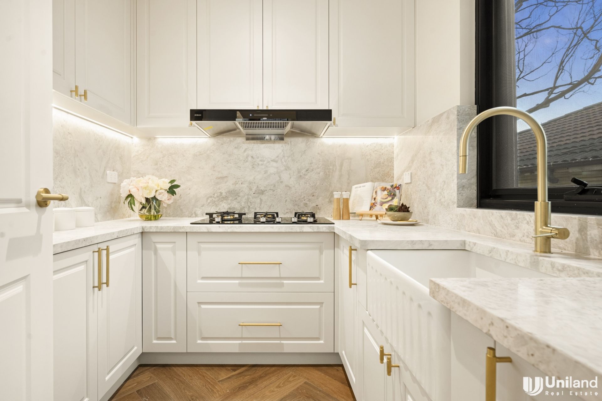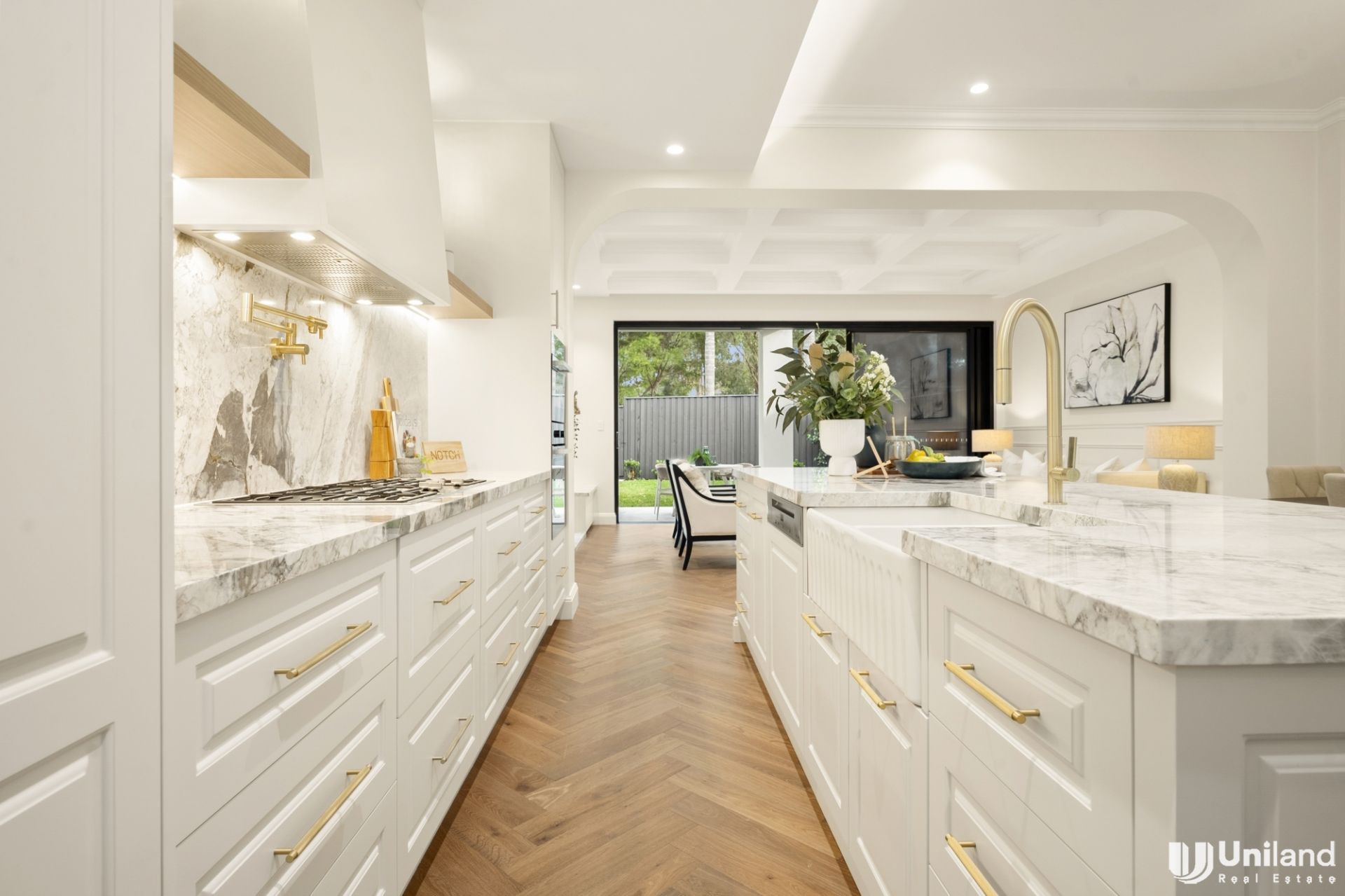 Built with enduring quality through a double-brick and concrete-slab structure, this sophisticated family sanctuary is the latest exceptional creation by Notch Design Studio and Spencer Home. From the moment you step through the grand double-height entrance, greeted by a magnificent chandelier, the sense of refined opulence is unmistakable.