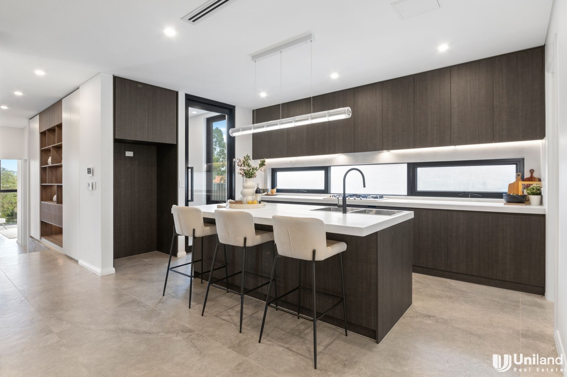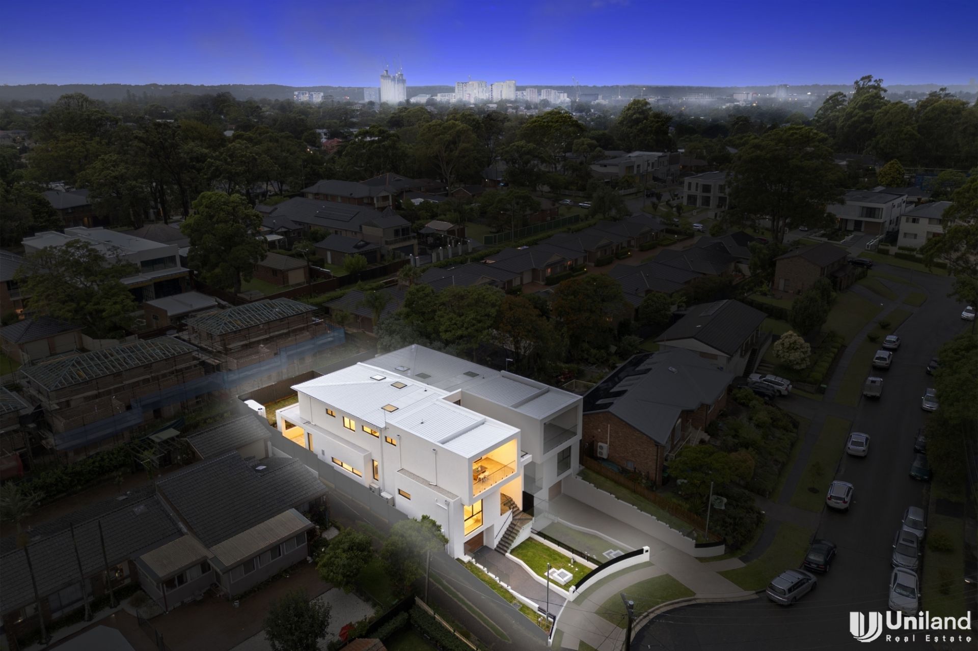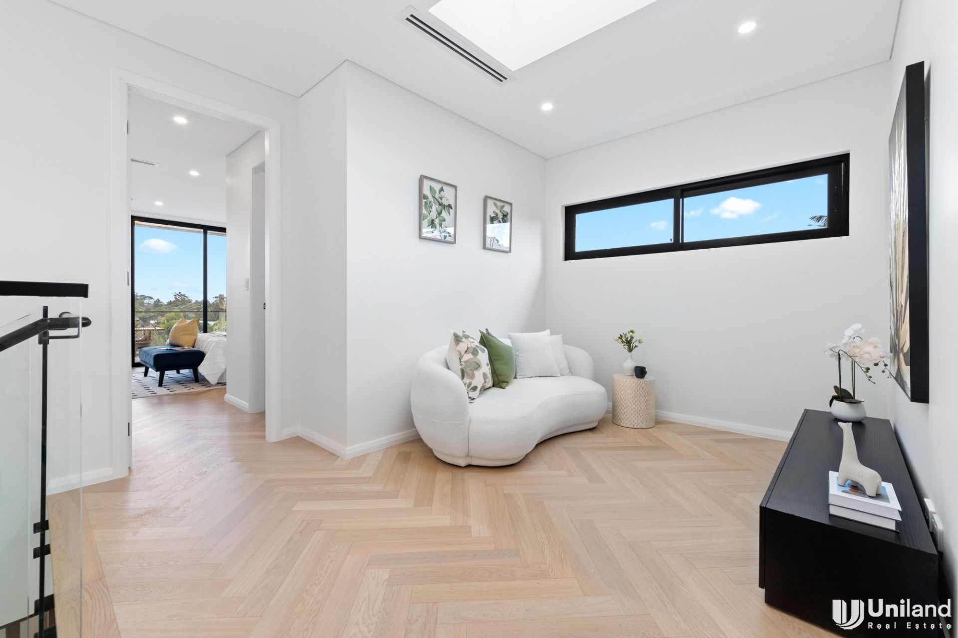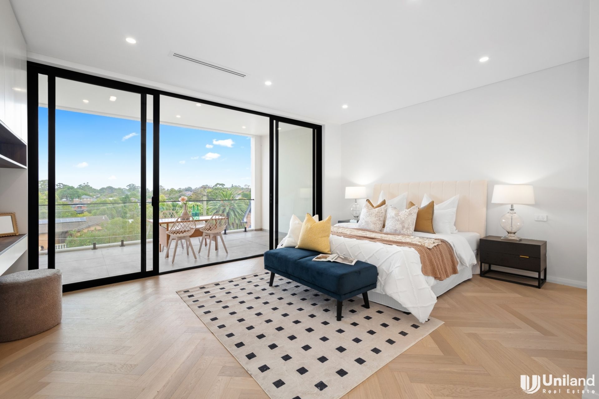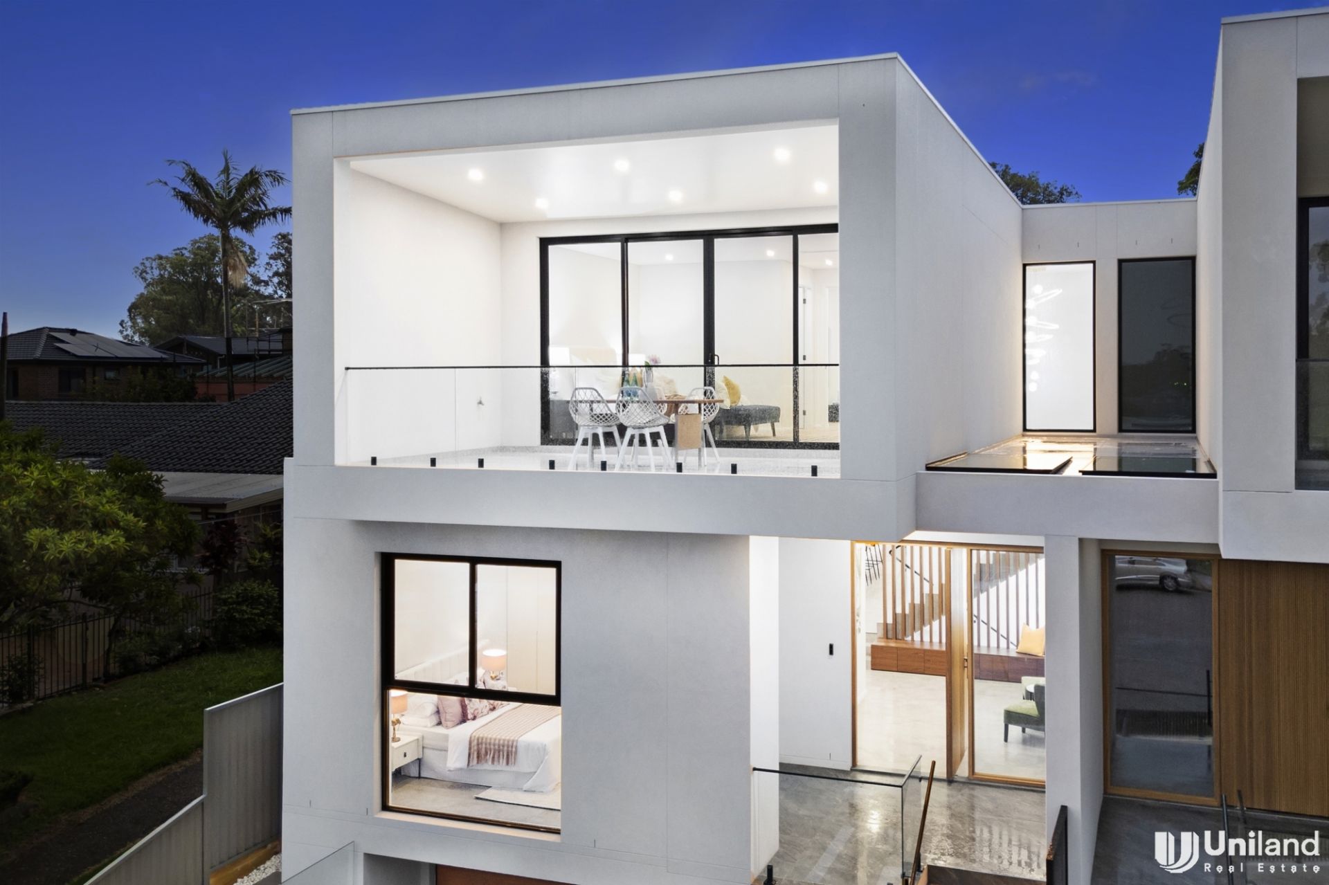 Spectacular in design and unmatched in appeal, this brand-new architect designed duplex combines cutting-edge appointments with breathtaking district views. Holding a coveted north-facing position in a prized location close to Eastwood station and within the catchment for Epping Boys High School, this is a remarkable opportunity to indulge a peerless level of living. Meticulously crafted with three expansive and separate living spaces, an unforgettable island kitchen is joined by an esteemed secondary kitchen housed with powerful Robam appliances. Extraordinary dining, backdropped by a wine bar and custom cabinetry, highlight a seamless fusion of modern elegance and practical functionality. Perfect for cross-generational families, an in-law suite on main level living is thoughtfully private from bedrooms on the upper floors where a primary suite rewards with an exceptional terrace. Elegant