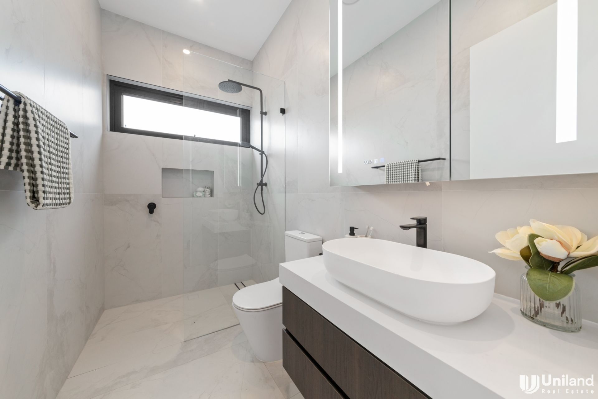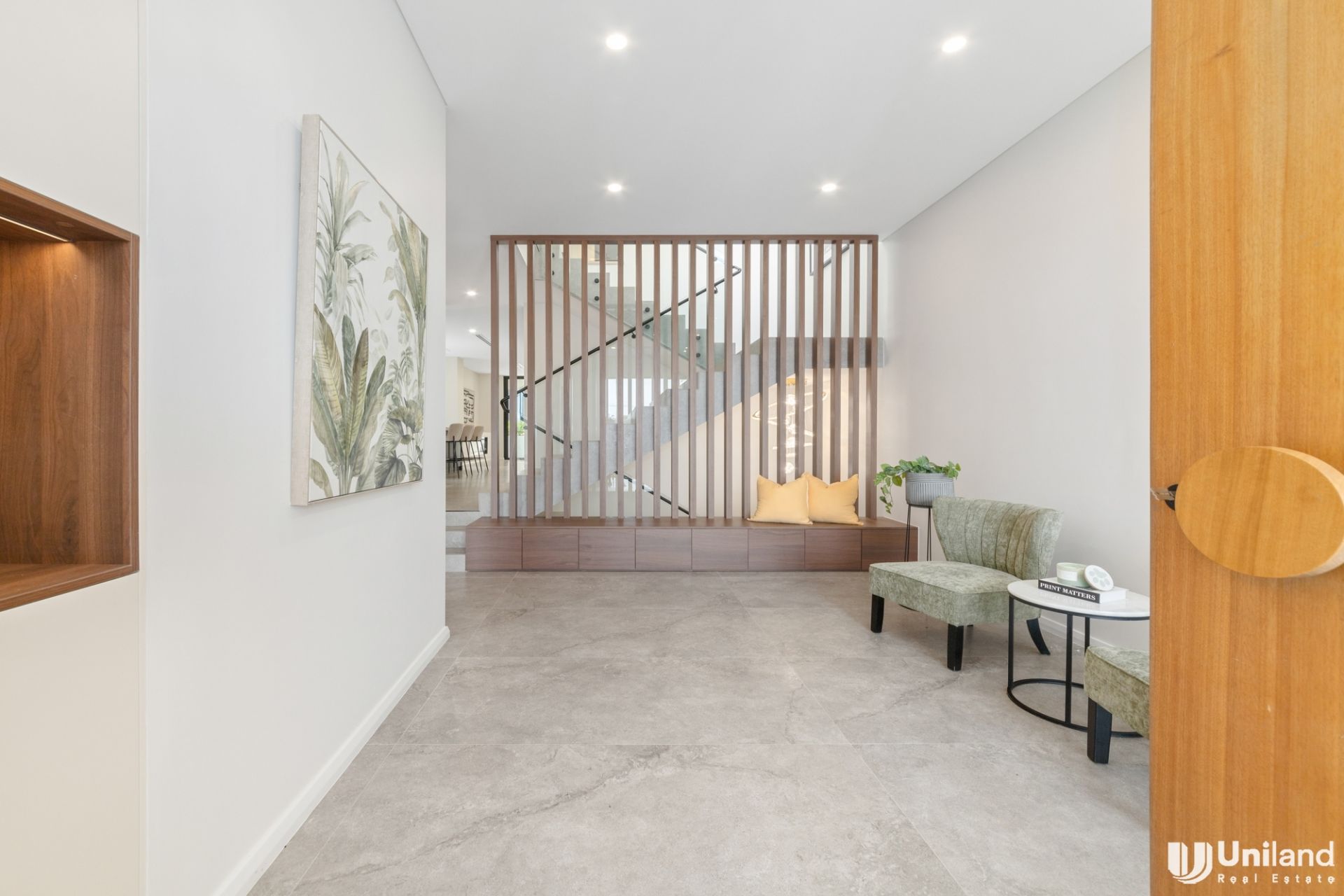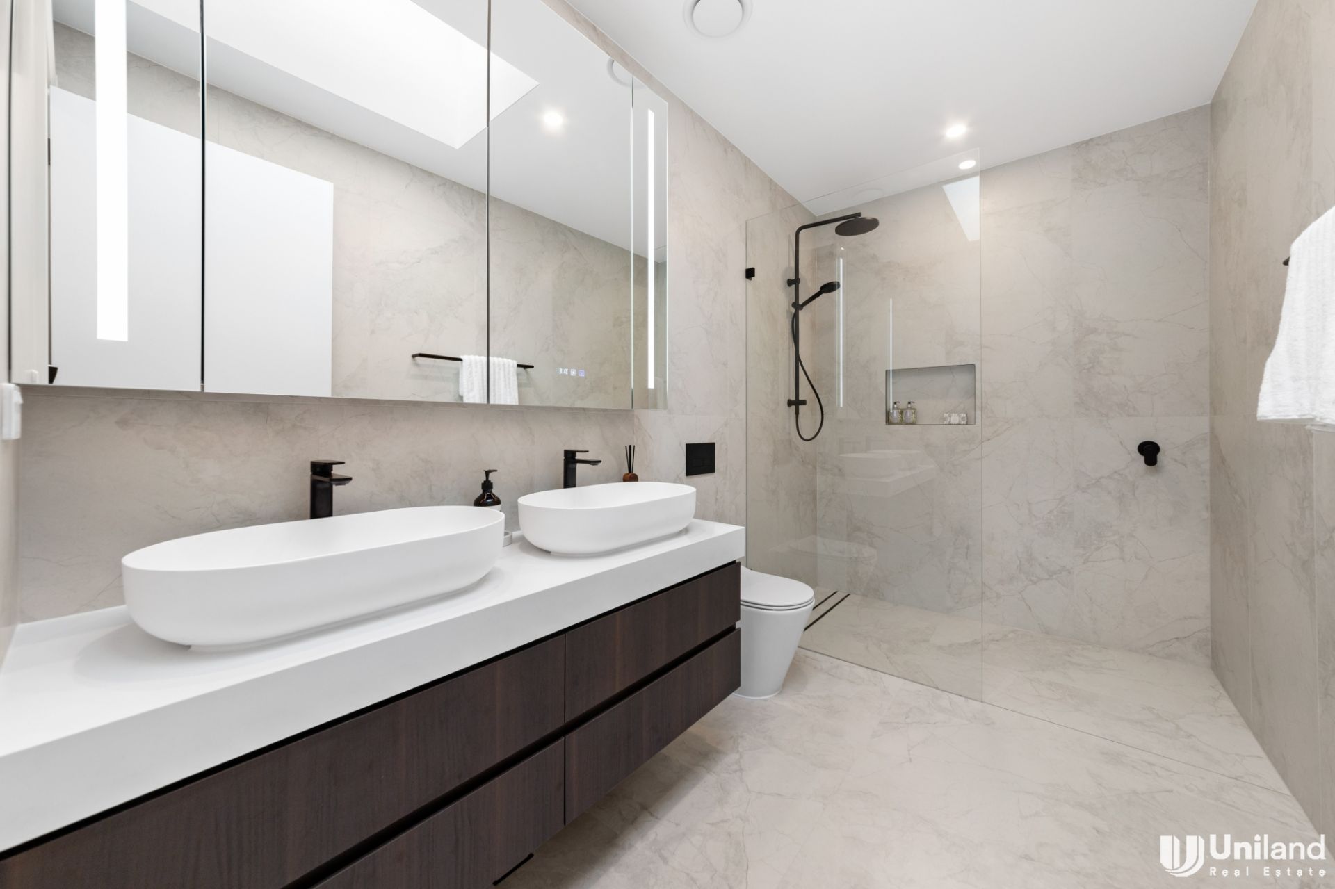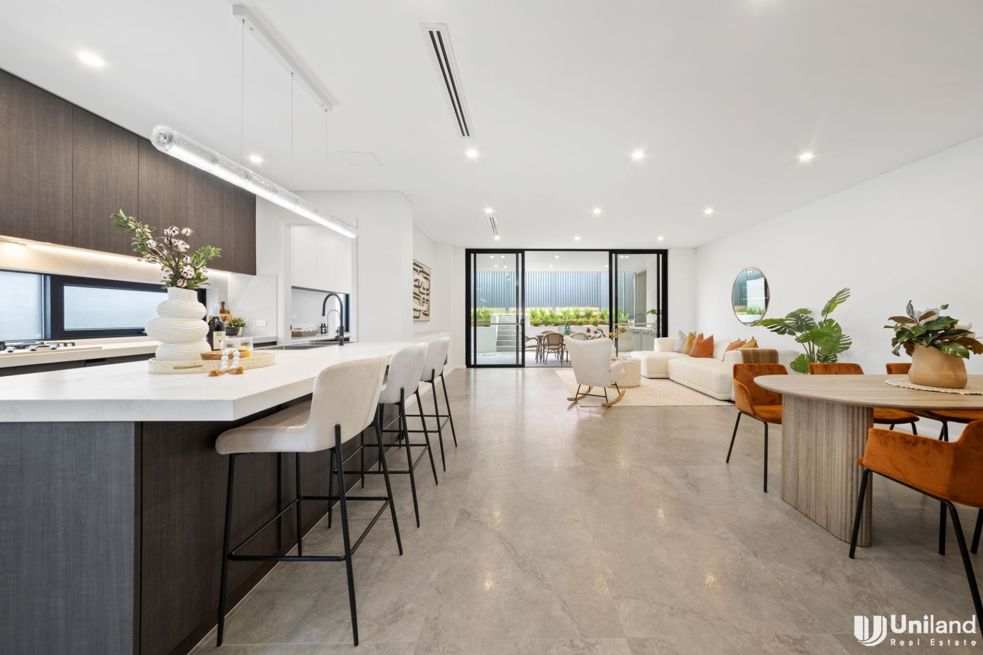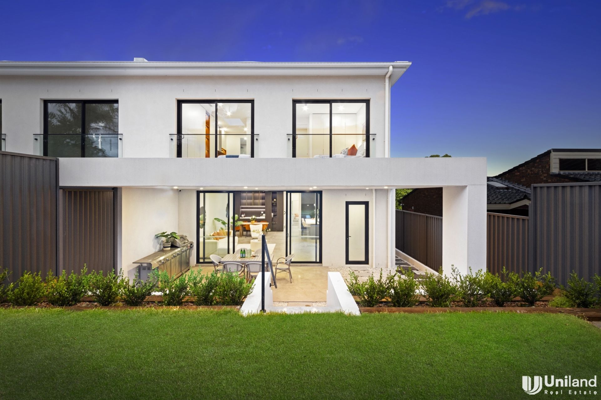 Spectacular in design and unmatched in appeal, this brand-new architect designed duplex combines cutting-edge appointments with breathtaking district views. Holding a coveted north-facing position in a prized location close to Eastwood station and within the catchment for Epping Boys High School, this is a remarkable opportunity to indulge a peerless level of living. Meticulously crafted with three expansive and separate living spaces, an unforgettable island kitchen is joined by an esteemed secondary kitchen housed with powerful Robam appliances. Extraordinary dining, backdropped by a wine bar and custom cabinetry, highlight a seamless fusion of modern elegance and practical functionality. Perfect for cross-generational families, an in-law suite on main level living is thoughtfully private from bedrooms on the upper floors where a primary suite rewards with an exceptional terrace. Elegant