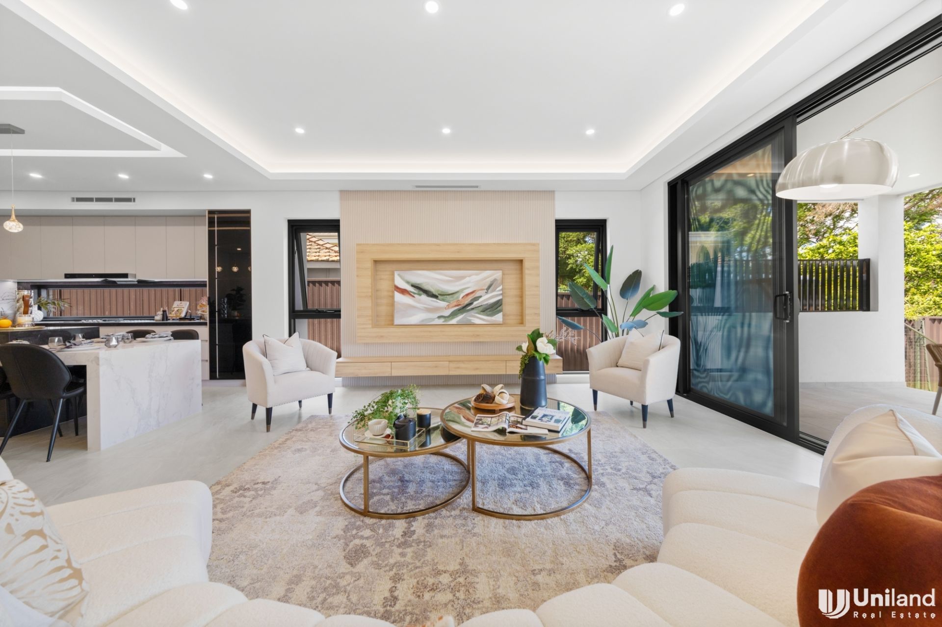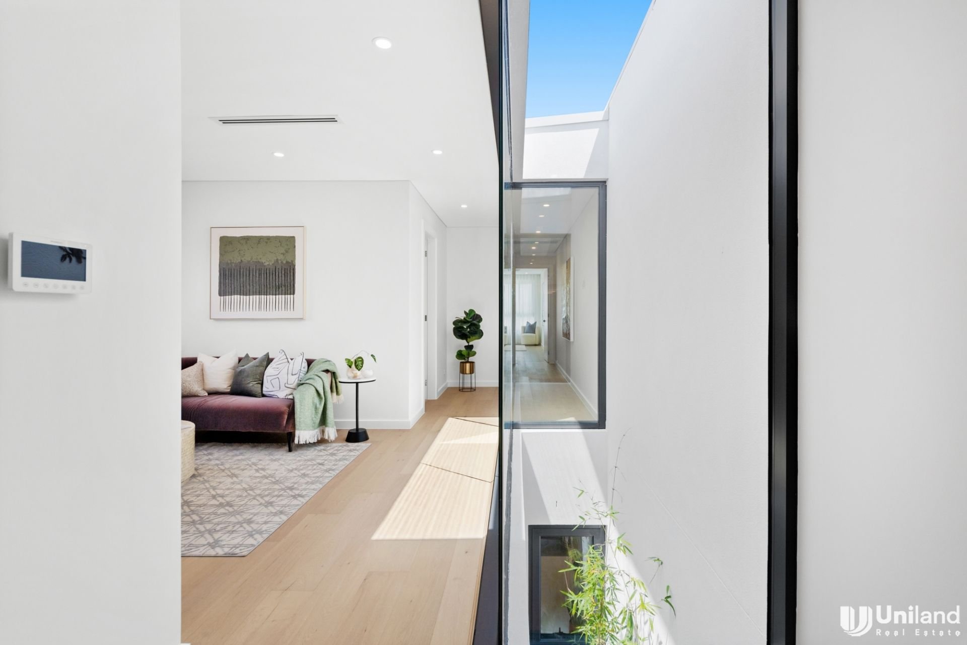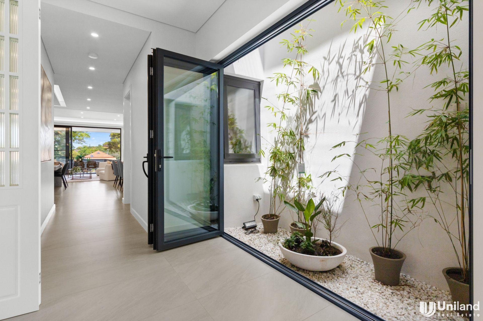 Infused with calming tranquillity, a Zen garden balanced by a central open-air atrium courtyard harmonises upper-level living integrated with a wet bar, two master suites and two double bedrooms. In-law ensuite accommodation on the ground floor is further enhanced by purpose-built wardrobes