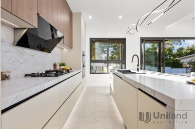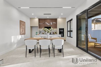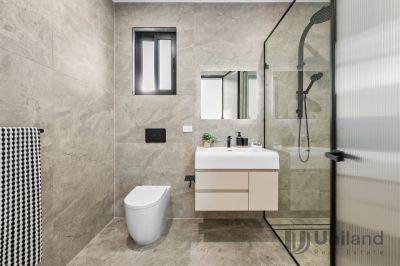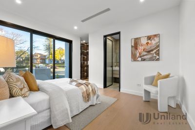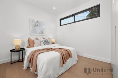 Crafted for contemporary living, this brand-new architect-designed duplex blends premium construction with a calm, minimalist aesthetic. Designed with an effortless connection between floors, a striking void, highlighted by a towering feature wall, defines open plan living with a seamless integration through dining and kitchen spaces. Appointed with top-tier Miele appliances, gourmet entertaining transitions outdoors to a covered deck bordered by level lawns. Focused on ease, bedrooms across both levels include the opportunity for in-law accommodation, while a primary suite retreats to a private balcony setting. Thoughtfully finished with double-glazed windows, secure entry, ducted air conditioning, and custom lighting, this modern home enjoys enviable proximity to the lifestyle precincts surrounding Macquarie University and Eastwood Station.