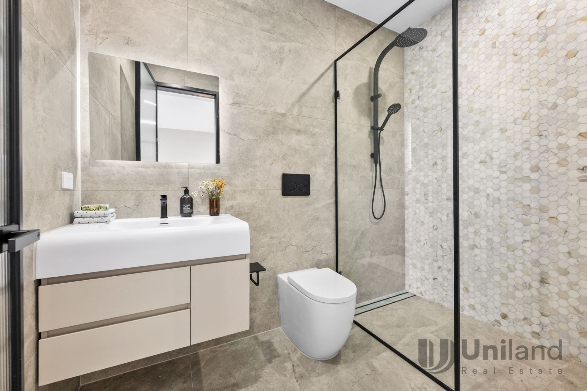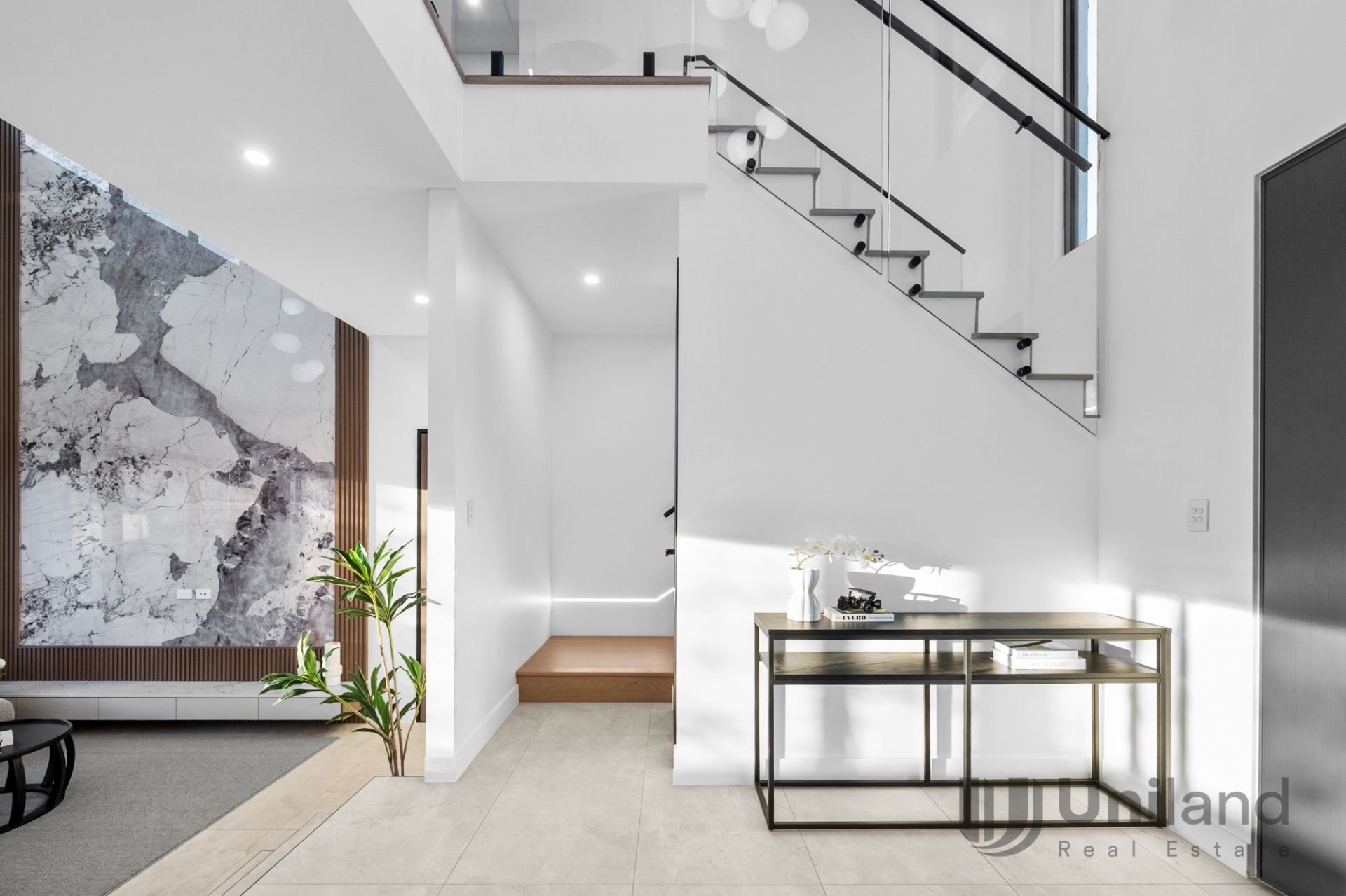 • Designer details highlighted by a monochrome colour scheme, striking feature wall, recessed lighting, streamlined flooring and an effortless connection between floors