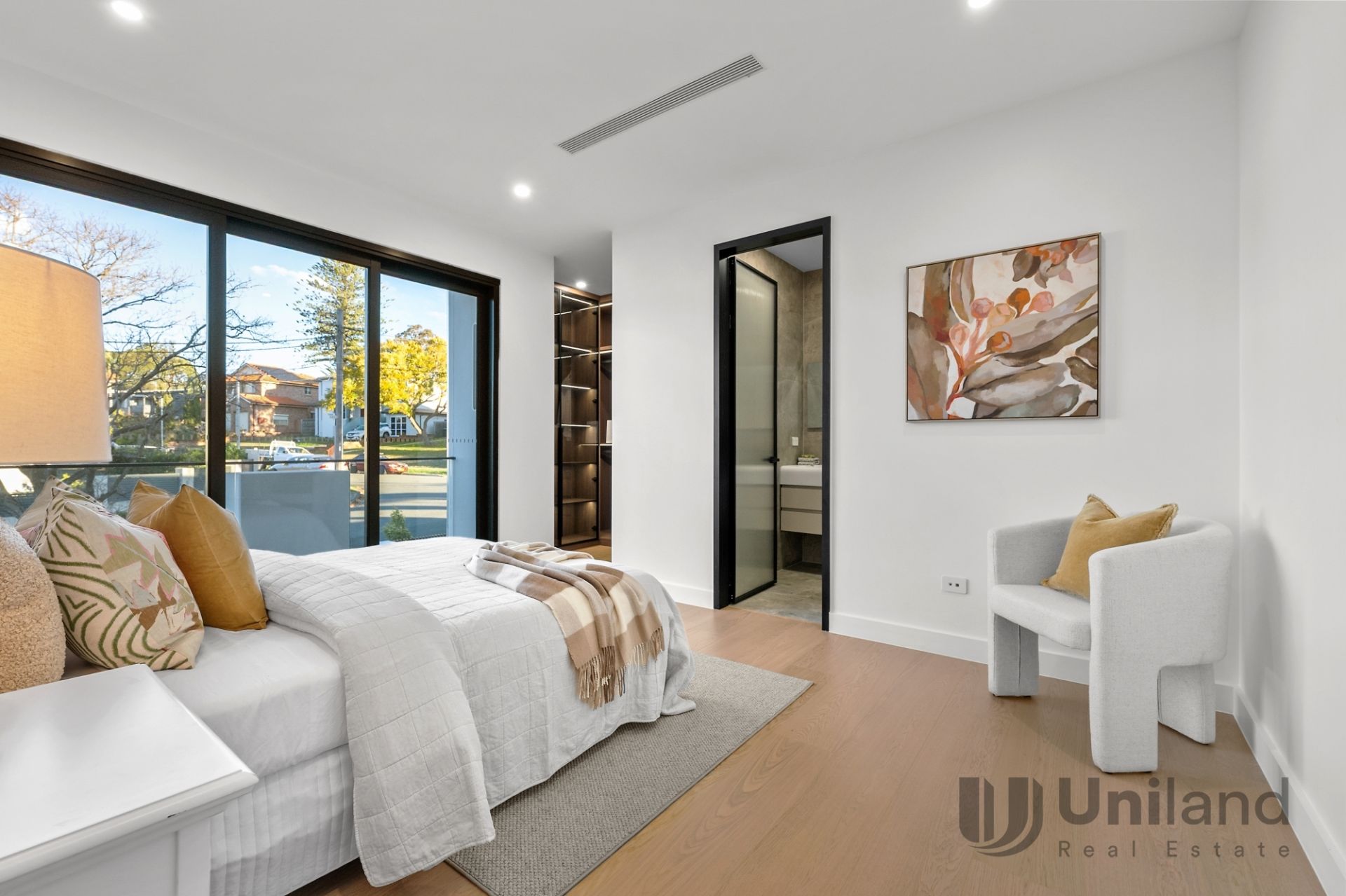 • Upper-level primary bedroom features a private balcony, walk-in wardrobe, and ensuite bathroom