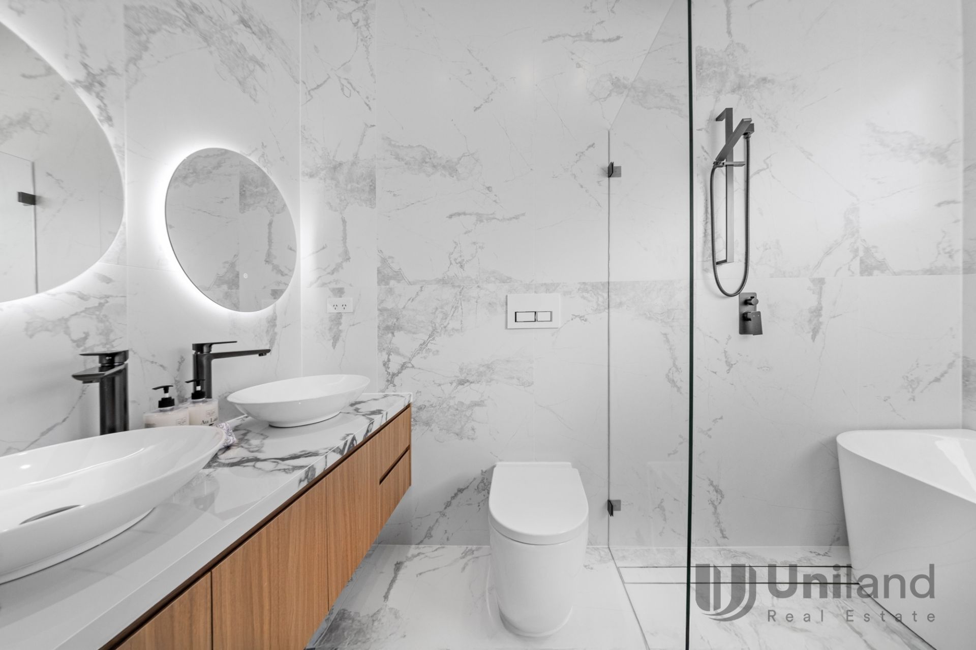 * Bathrooms all finished to the same exacting standards, detailed with LED mirrors, hotel-like walk-in showers, heat lamps, double vanities, select spaces include skylights