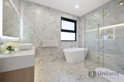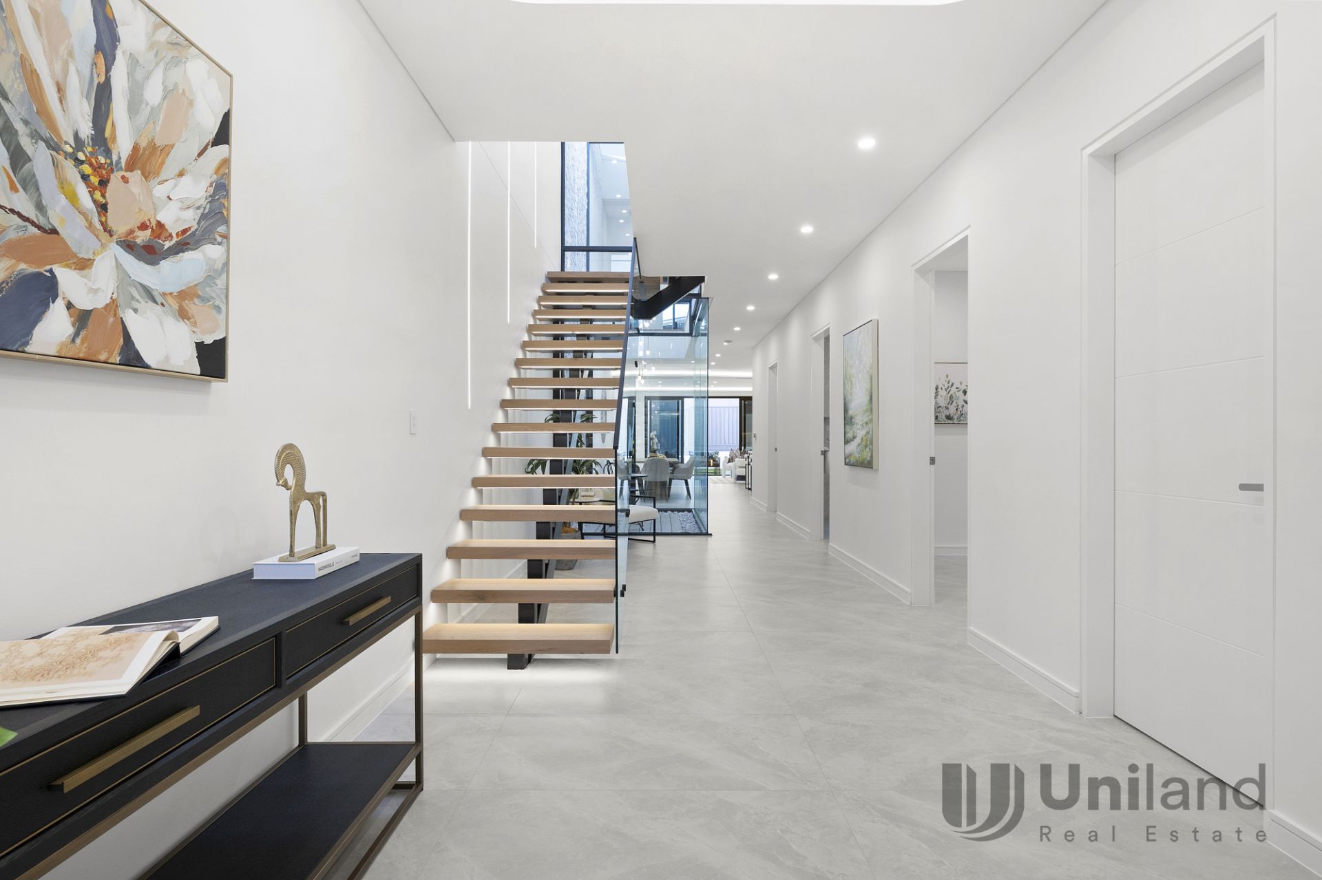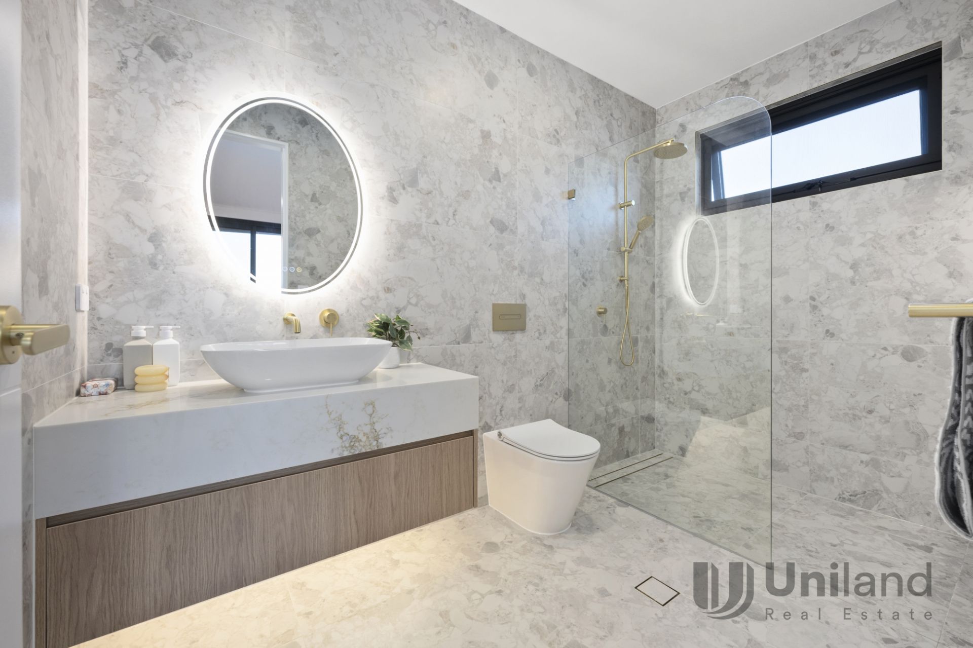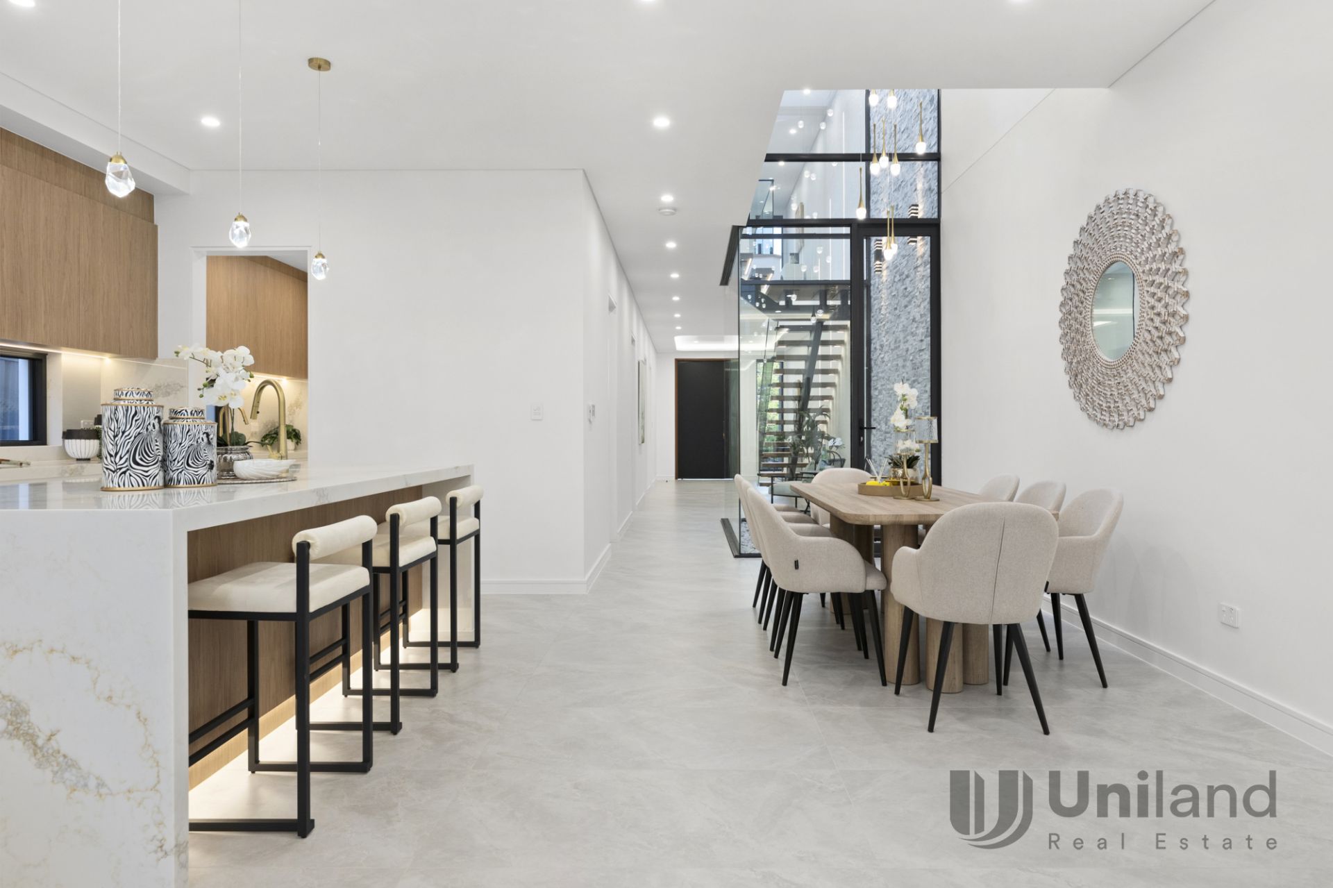 Timber floors lead through upper-level bedrooms framed by a choice of two primary suites at the front and rear, while a ground-floor bedroom offers a stair-free option for in-laws. Comprehensive appointments include smart-lock and intercom entry, zoned ducted air conditioning and tiled garage flooring, where every detail speaks with excellence. Steps from bus services to Macquarie, Milsons Point, and the city, this address is walking distance to Midway Shopping Centre, Santa Rosa Park, and Denistone East Public School, with zoning for Epping Boys High School.