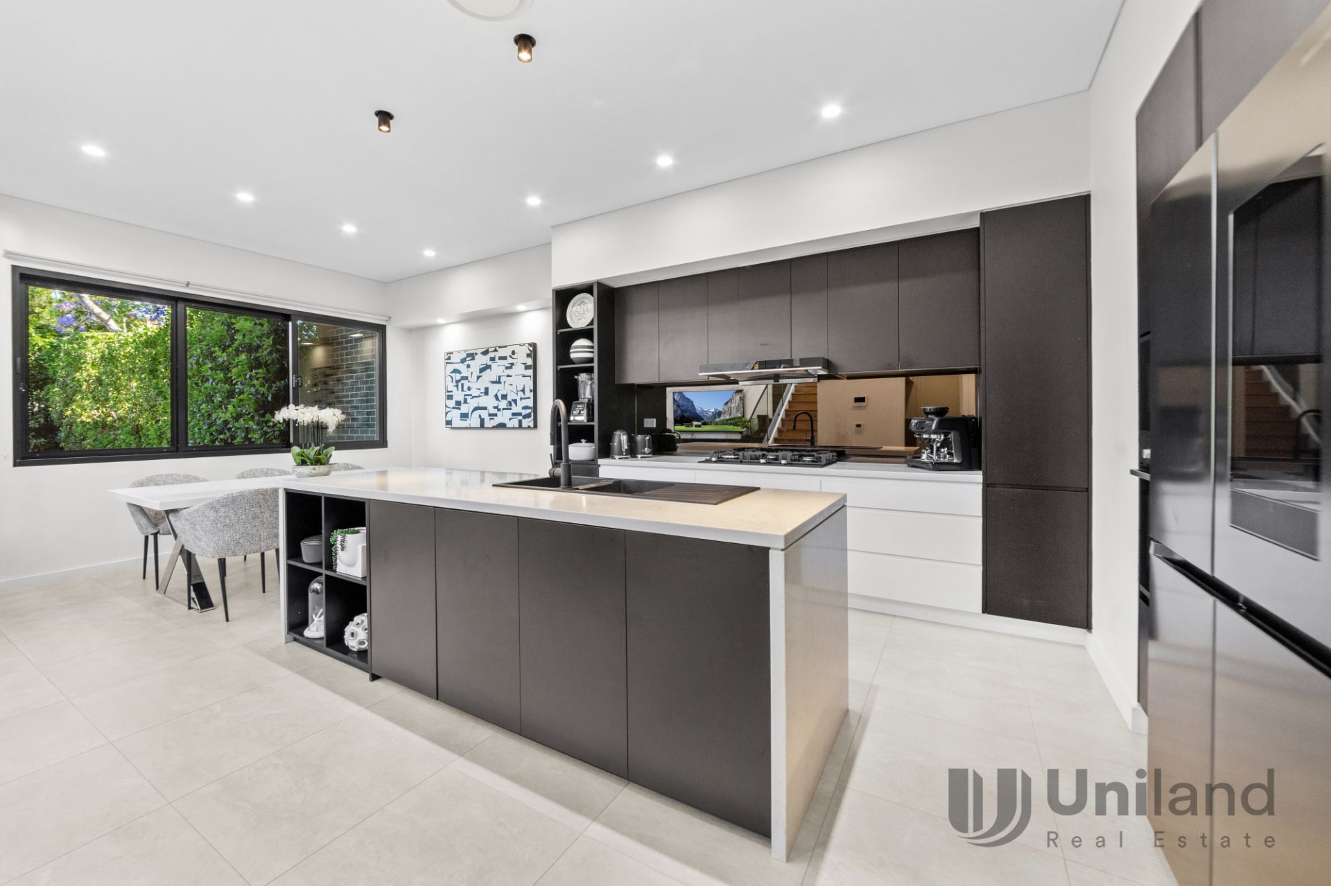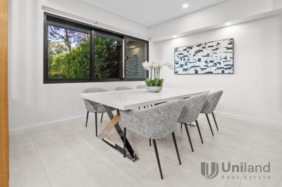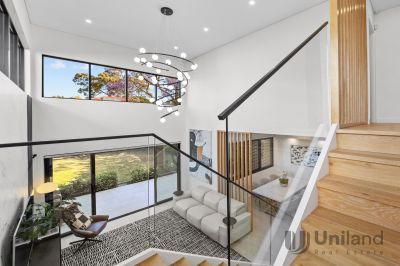 Minutes from the centers of Eastwood, Epping, and Macquarie, this duplex unfolds over an exceptional layout accommodating up to six bedrooms. Highlighted by light-infused interiors, impressive ceiling heights, and chic designer interiors, it through a premium kitchen, boasting chef-quality appointments to connected entertaining spaces.