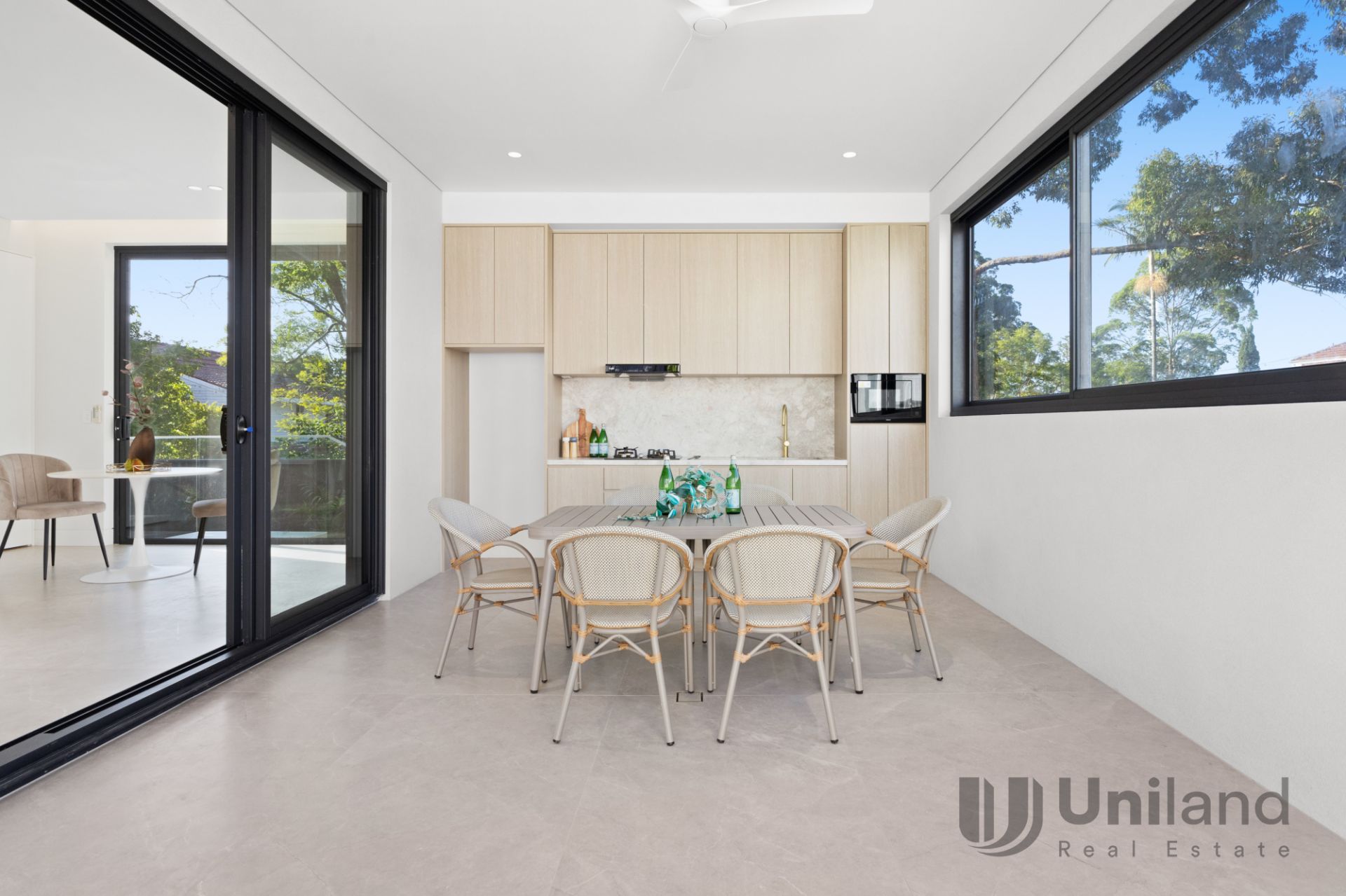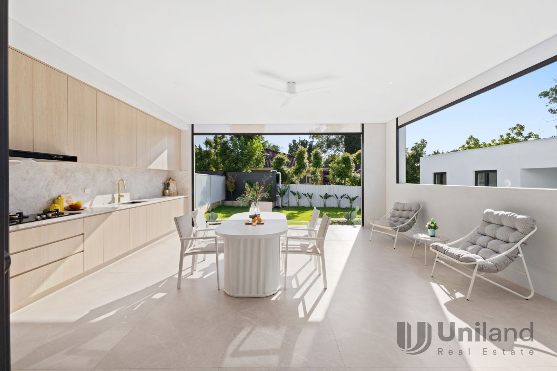 Seamless indoor-outdoor living – Oversized alfresco, outdoor kitchen, and automated zip screens