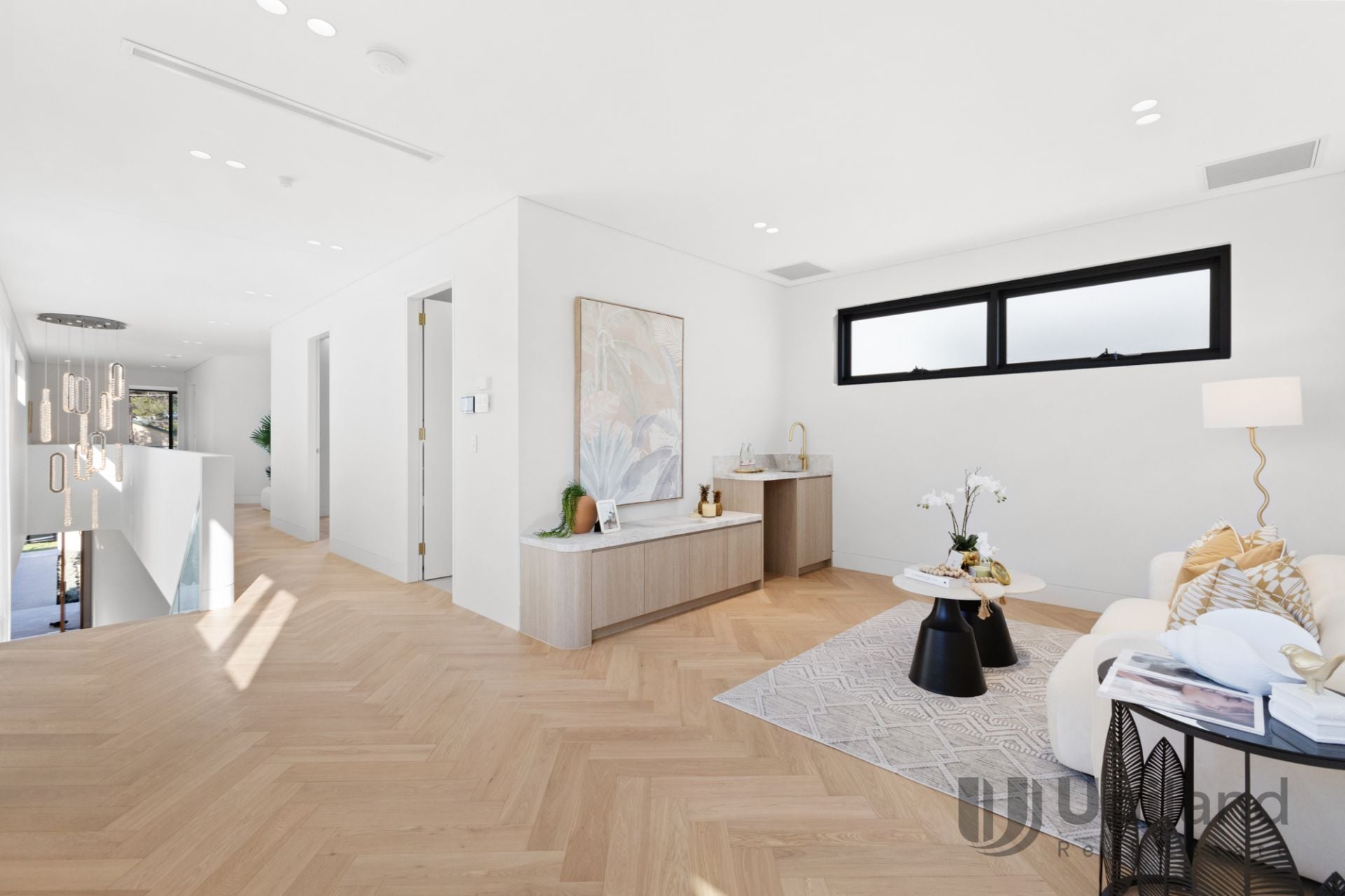 Grand interiors – 3m shadow-line ceilings, floor-to-ceiling glazing, and herringbone floors