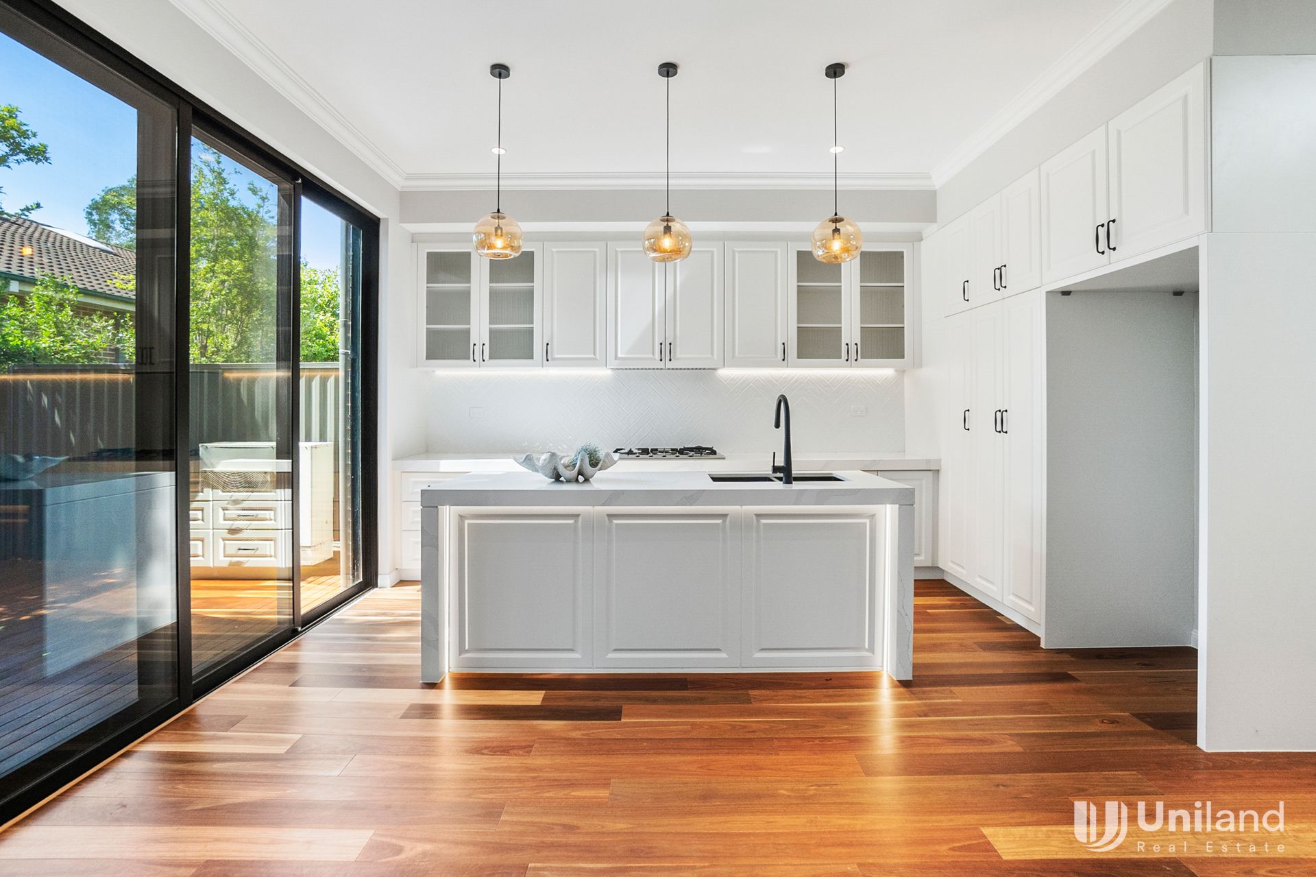 - Gourmet kitchen with stone benchtop and Miele's appliances.