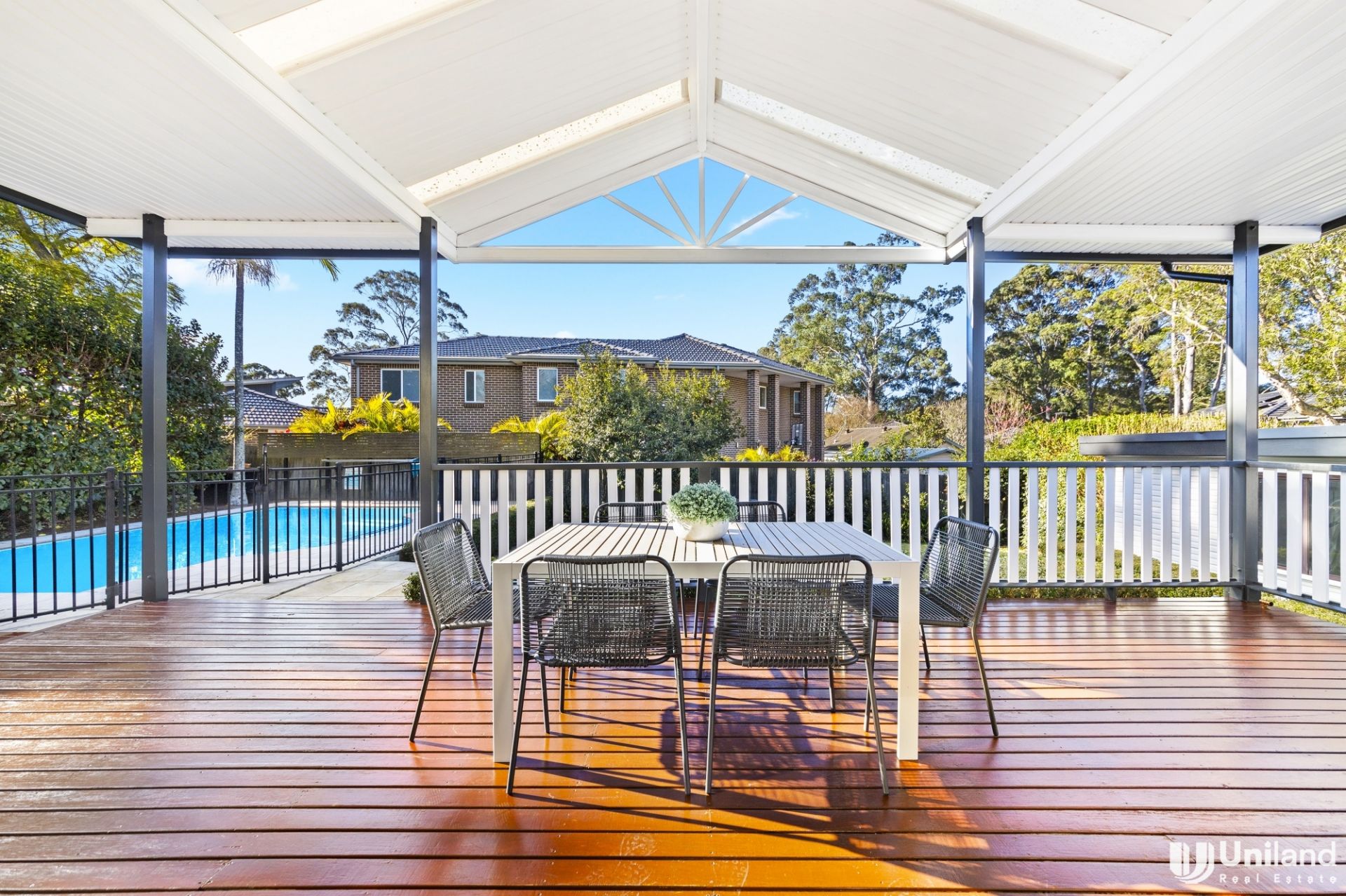 * Sun-drenched pergola with privacy and comfort and under covered Alfresco