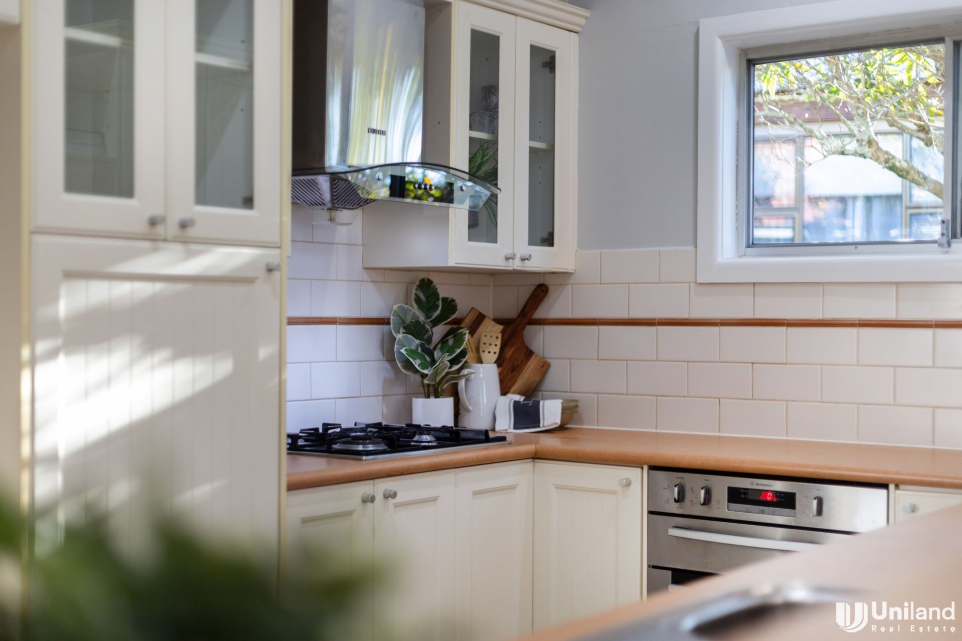 * Gourmet timber kitchen with gas cooking with ample storage
