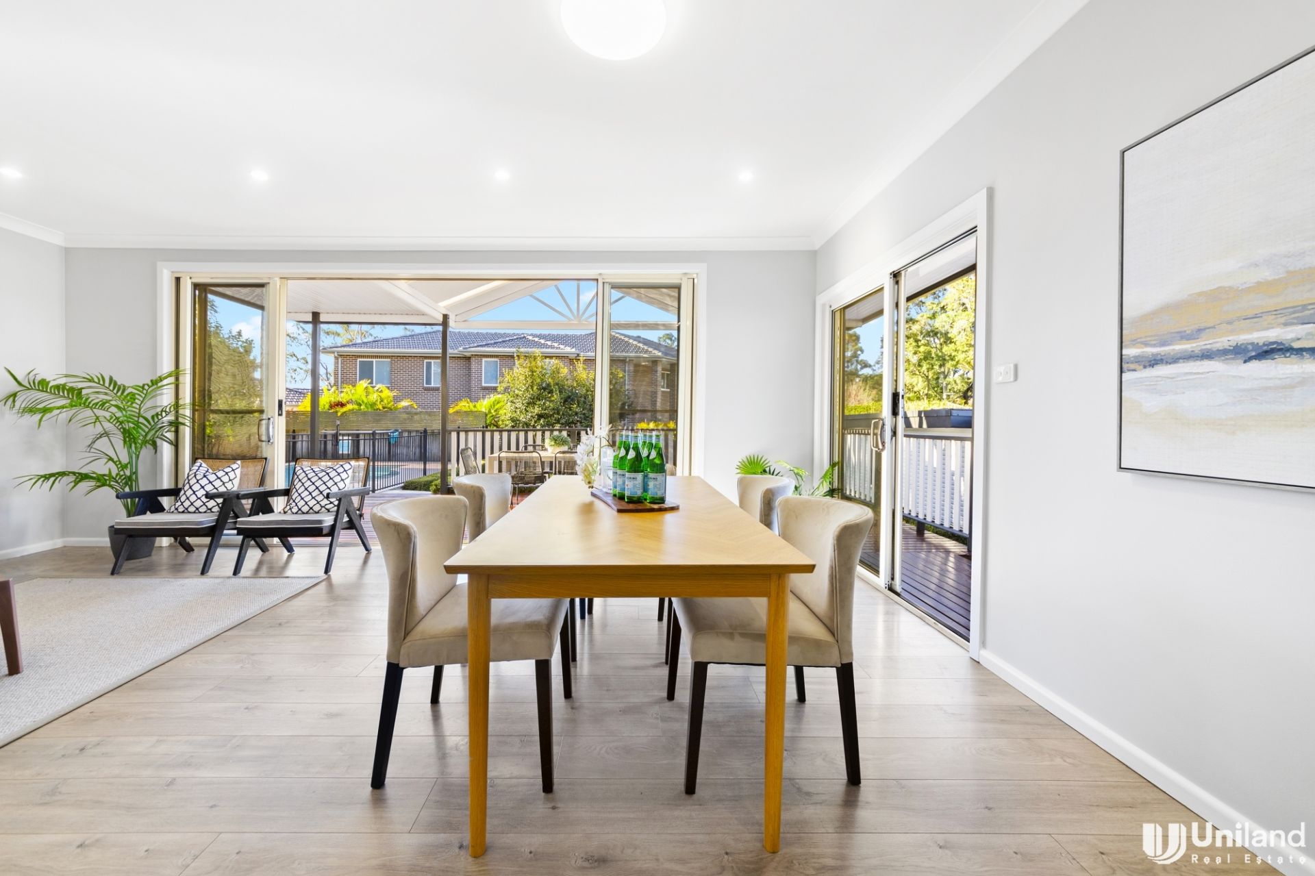 Upon entering, discover a sunlit formal lounge offering a welcoming atmosphere. Glassdoors from both living and dining area seamless access to the pergola area reveal a new undercover entertaining area. Whether it's hosting family picnics, enjoying a morning coffee in nature, or simply relishing the beauty of a well-maintained swimming pool the backyard becomes a private oasis, offering a perfect balance between relaxation and outdoor enjoyment.
