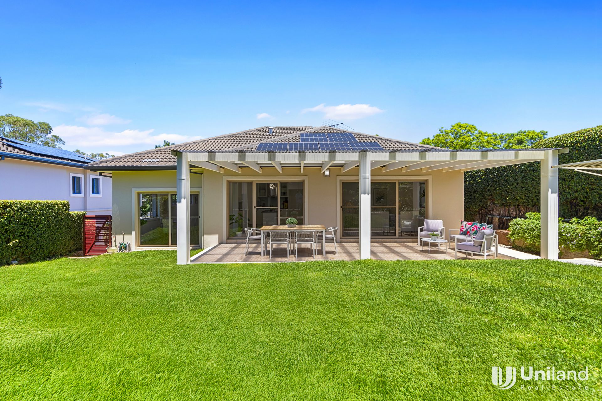 -Other features: concrete eco-block walls, ducted air conditioning, automatic lock-up double garage, ample storage, LED downlights, solar panels, and an internal laundry.