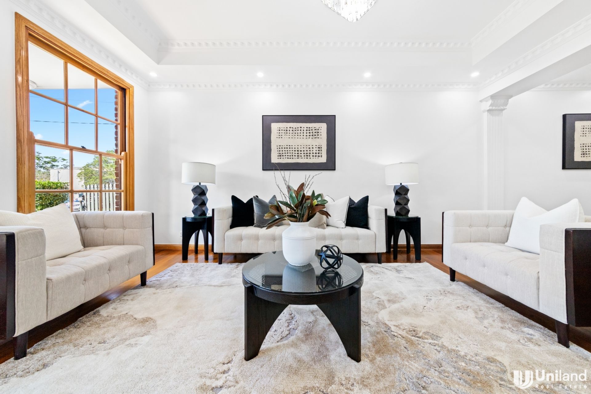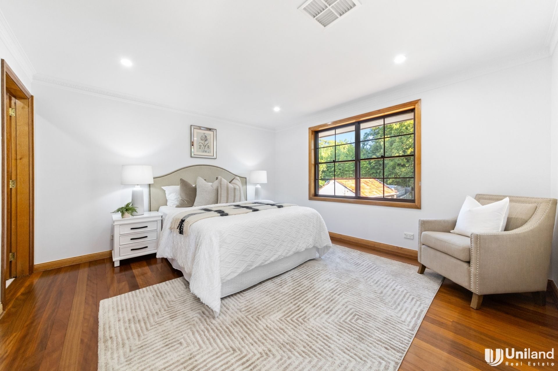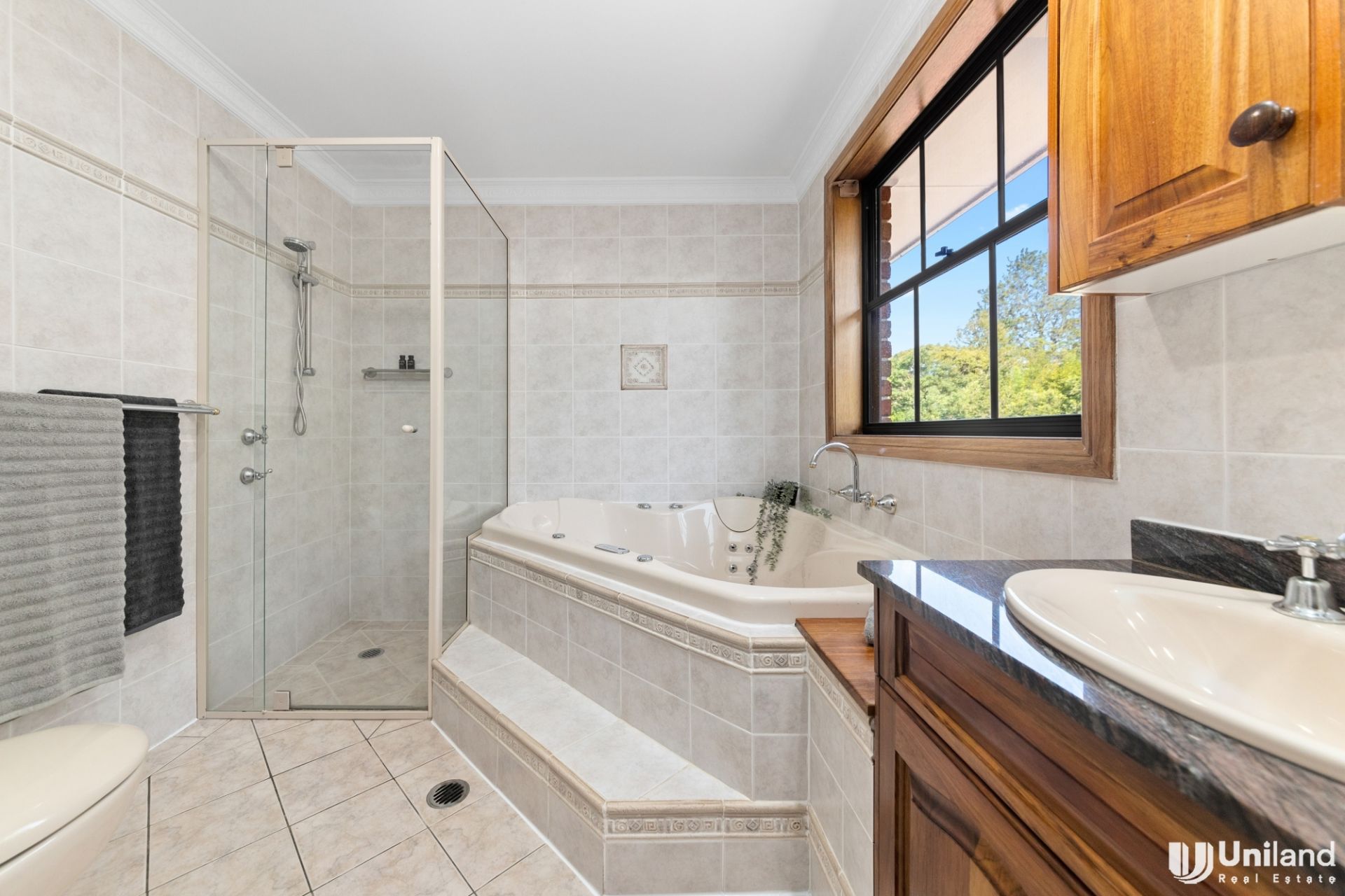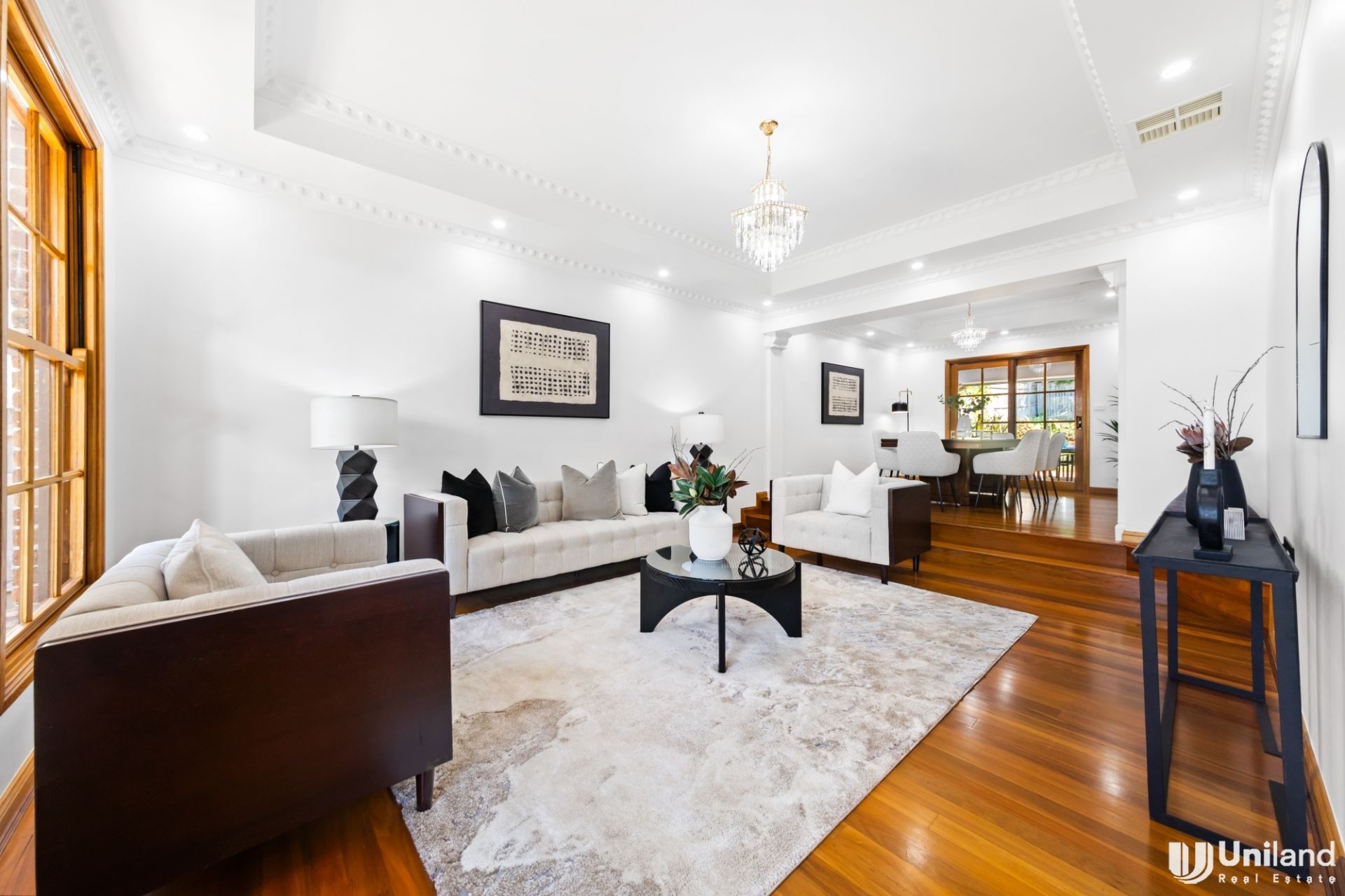 The spacious floor plan offers multiple living zones, and the lawn and gardens are both blissfully sun-kissed and incredibly private. The central granite kitchen is perfectly placed between the casual and formal dining areas, and, there is also the ability to dine alfresco with a covered outdoor entertaining area.