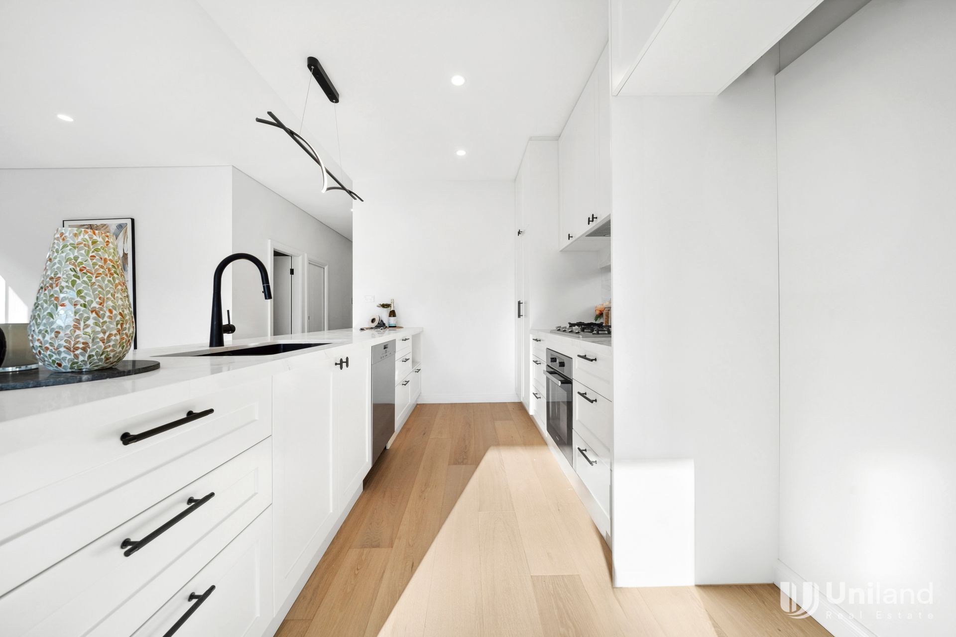 -Gourmet gas kitchen with stone benchtops, quality appliances, and plenty of storage.