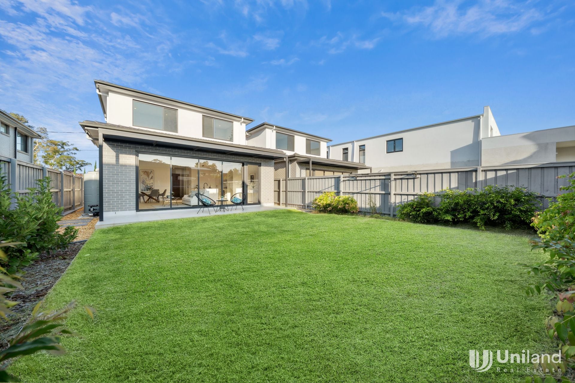 -Large outdoor entertaining with a covered dining zone overlooking the secure level garden perfect for furry friends and small children