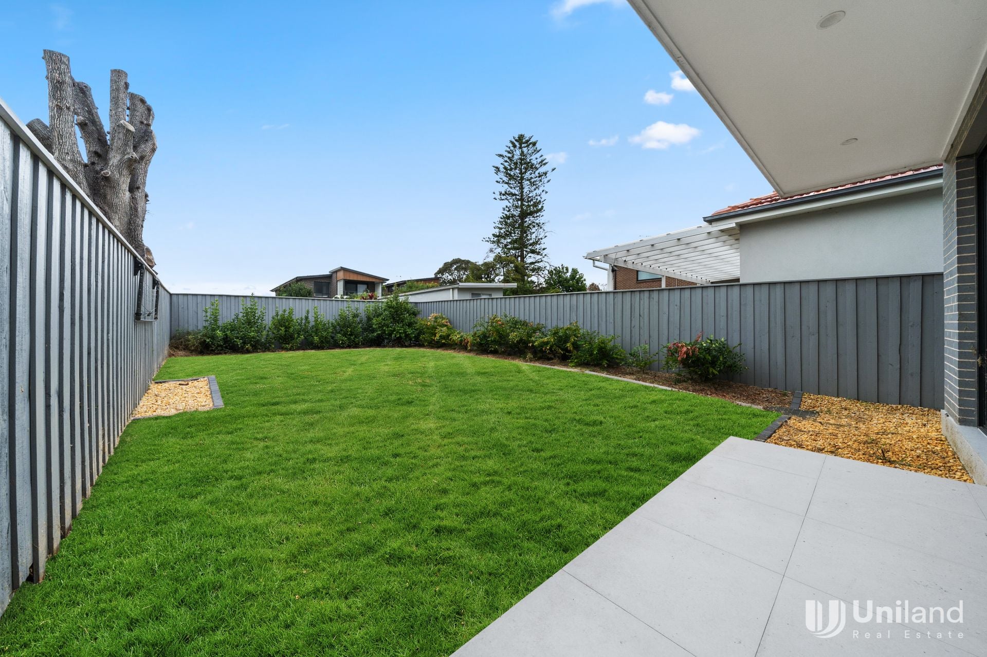 -Large outdoor entertaining with a covered dining zone overlooking the secure level garden perfect for furry friends and small children