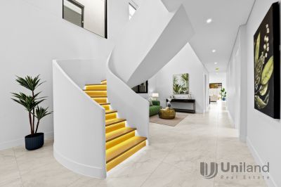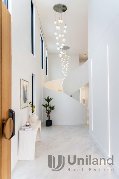 * Dramatic double-height voids, sleek lighting design, curved walls, statement appointments