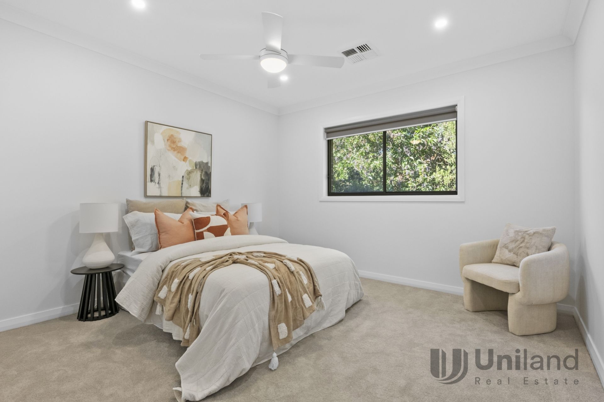 - Designer-grade touches include elegant wainscoting, modern lighting features, ducted air conditioning, and plantation shutters