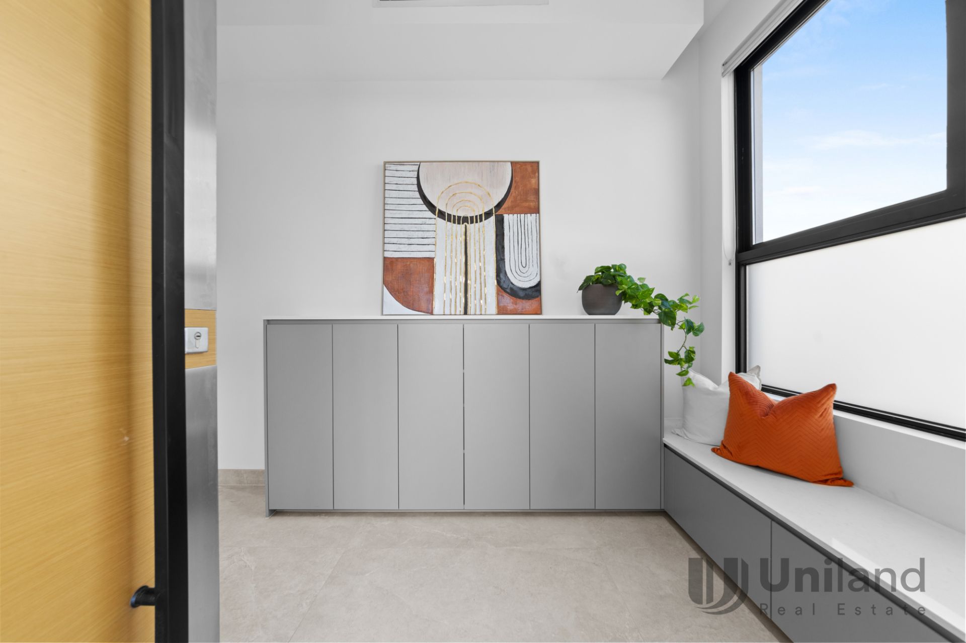 - Stunning entry foyer with a purpose-built transitional space featuring bespoke cabinetry for stylish storage of everyday essentials